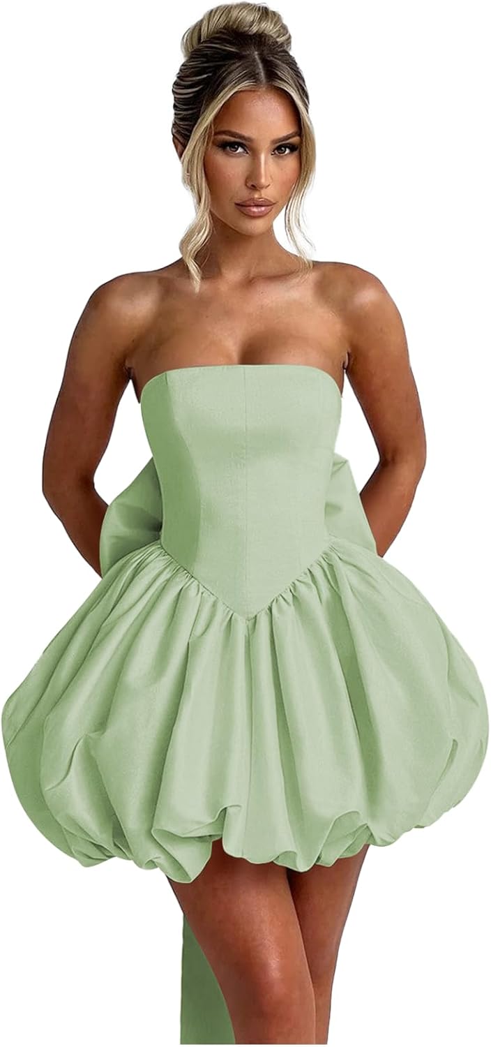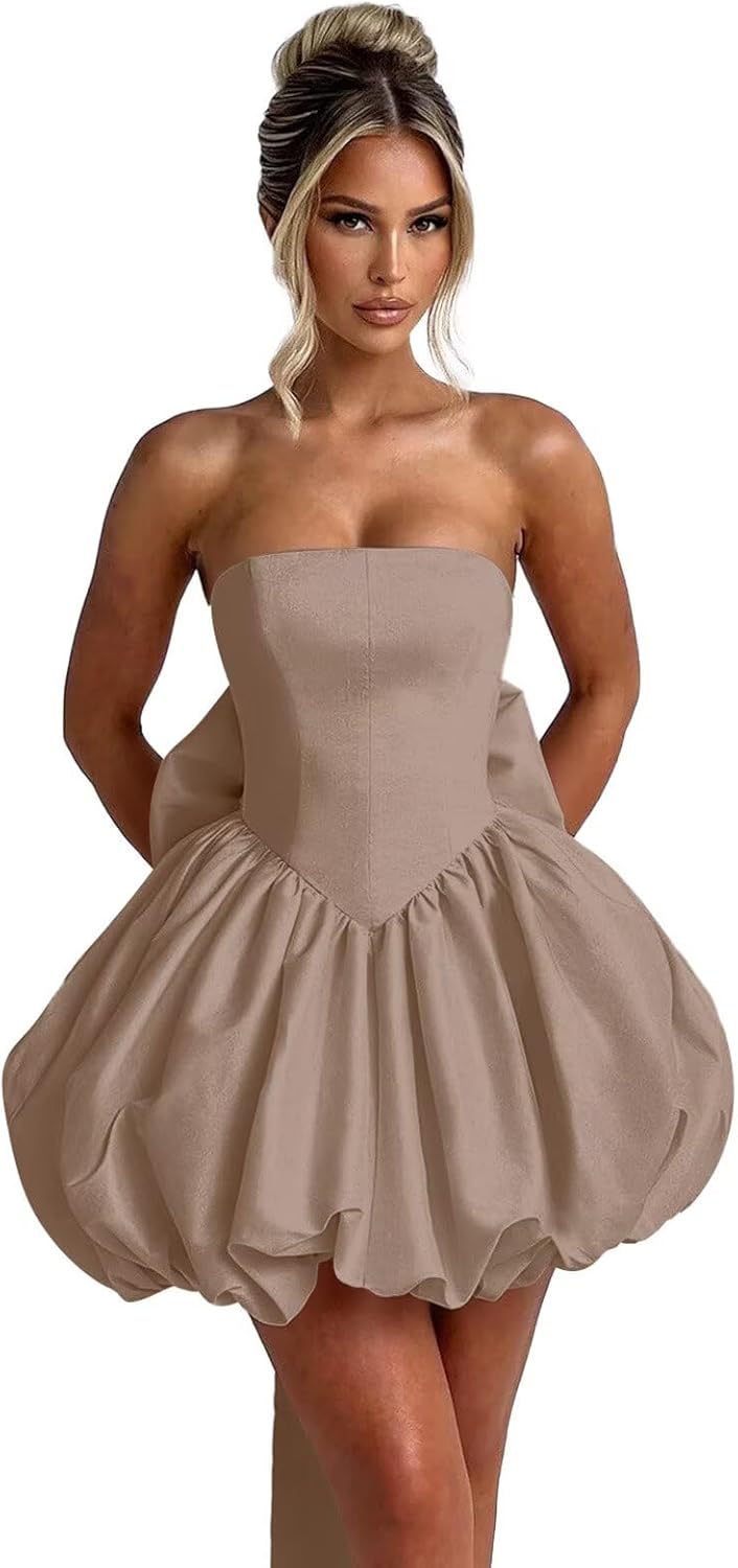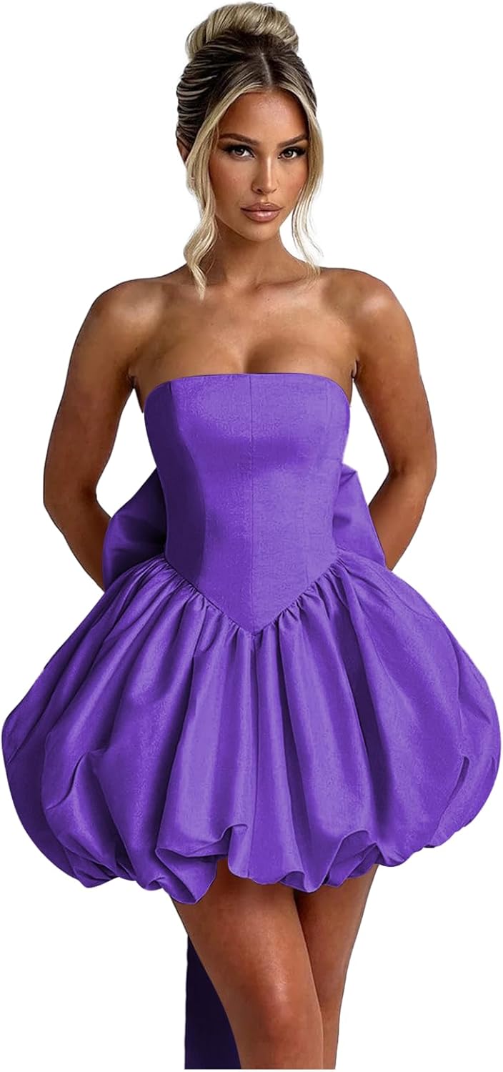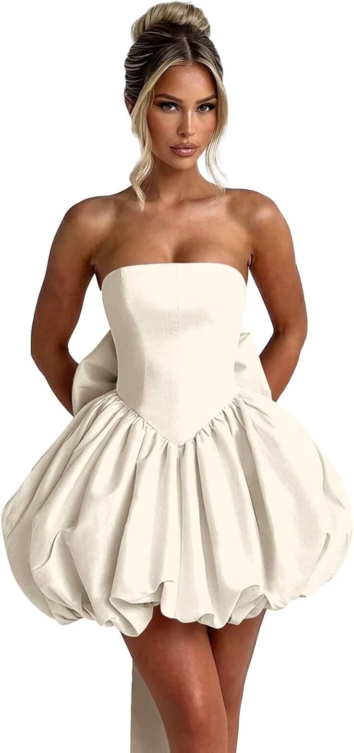 Welcome to Monvelli, we are a professional dress manufacturer, all of which we are using high-quality fabrics.Product Features:1.Fabric: Soft Silk Satin2.Silhouette: A-Line3.Length: Above Keen Length4.Neckline: Strapless5.Sleeves: Sleeveless6.Embellishment: Empire Waist, Bow7.Back Style: Lace upIf you are not sure of your size, please take the measurement according to the measurement table. The measurement details are as follows:1.Full Bust _ inch2.Waist _ inch3.Hips _ inch4.Hollow to Floor _ inchWe also provide other customized service. If any requirements, please contact customer service first.Warm Tips:1. The real color of the item may be slightly different from the pictures shown on website due to camera quality and monitor settings. Photos are taken in natural light with no flash.2. For the urgent order,please contact us before placing order to ensure you can get it on time.3. For more information on returns or customization, please feel free to contact us, we provide 24 hours online service.