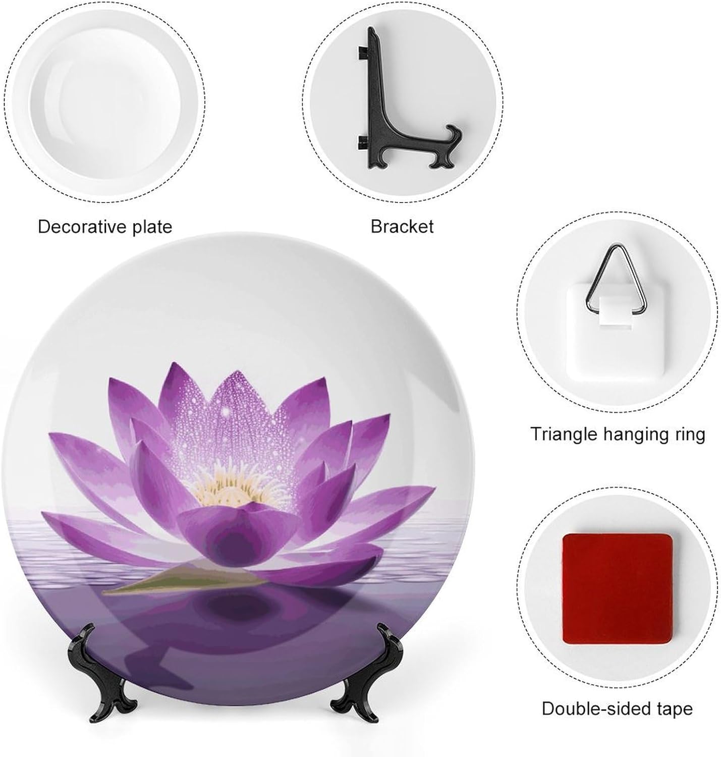 Our versatile ceramic Flower Purple plates are made of smooth ceramic material. The lightweight bone china plates can be easily placed anywhere you like, showcasing their decorative charm.This bone china dessert plate is available in four sizes: 6 inches, 7 inches, 8 inches, and 10 inches, making it an ideal choice for display items.Personalized decorative plates, perfect for displaying handicrafts, are an ideal choice for home décor. This vertical ceramic plate makes a wonderful gift for housewarmings, anniversaries, weddings, birthdays, Thanksgiving, New Year's, or any holiday.This French country-style ceramic plate is suitable for decorating or using in living rooms, offices, hallways, dining rooms, entrances, hotels, holiday homes, and other places.