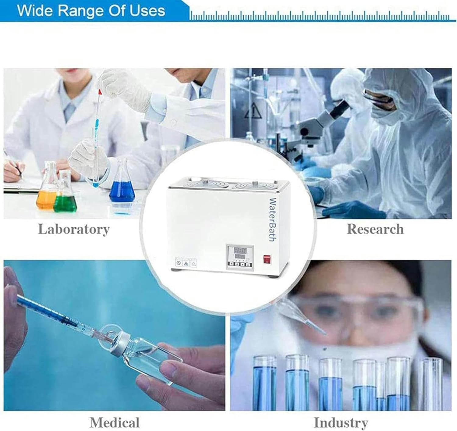 Model Number:Digital thermostatic water bath, single hole, double hole, four -hole, six hole are availableFunction:1. Adjustable in 0.1 ° C steps, the temperature can be set precisely from ambient temperature up to 100 ° C and simply monitored with a built-in timer from 0 to 999 minutes.2. Double digital display, which is covered with a protective frame, guarantees excellent accuracy and performance in order to easily maintain the desired water temperature3. Electric heating tube made of stainless steel, which is immersed directly into the water tank for heat exchange. High heating outputSpecifications:Model: 1loch, 2loch, 4loch, 6lochTemperature range: RT+10 to 100 ° CSupply voltage: 220V50HzTemperature step: 0.1 ° CPerformance: 500 W, 800 W, 1000 W, 1500 WMaterial of the inner wall: stainless steelEffective volume: 2.5 l, 5 l, 8 l, 15 lTime function: yesDigital clinic function: yesLiner size: 150 x 150 x 138 mm, 300 x 150 mm, 295 x 238 x 150 mm, 500 x 298 x 150 mmProduct size: 181 x 167 x 265 mm, 331 x 181 x 265 mm, 331 x 271 x 265 mm, 540 x 333 x 265 mmPackage includes:1 x digital water bath1 x stainless steel cover1 x power cable1 x carrier1 x cover ring from PP1 x manualNotes:1. This product is included in the form of benefits in kind. Due to factors such as light and equipment, there are some color differences.2. Due to the different measuring gestures, the dimensions can vary.