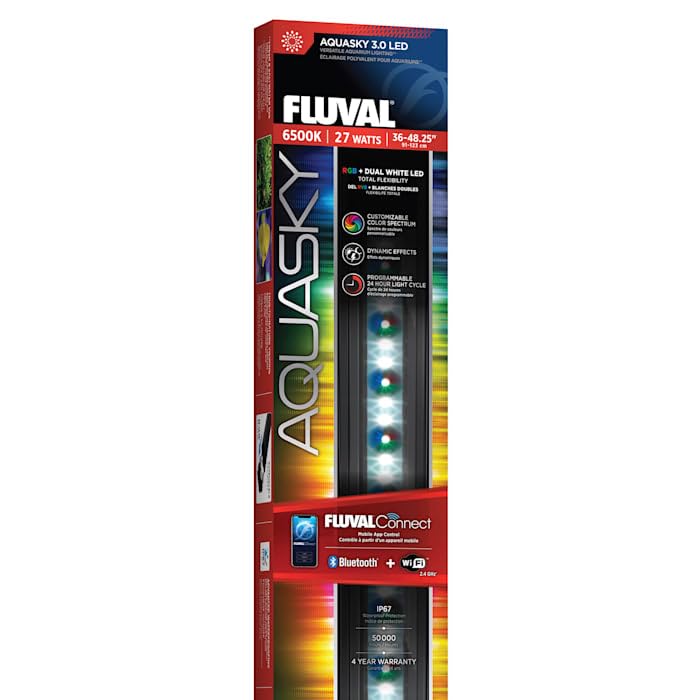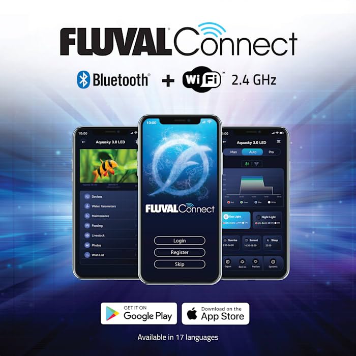 Controlled Exclusively Via The Fluvalconnect Mobile App And Highlighted By Rgb + Dual White Leds, Aquasky 3.0 Allows Users To Completely Customize Their Color Spectrum, Light Cycle And Dynamic Effects. This Latest Generation Also Features Both Bluetooth And Wi-Fi (2.4 Ghz) Connectivity, Making It The Most Versatile Lighting Option From Fluval.