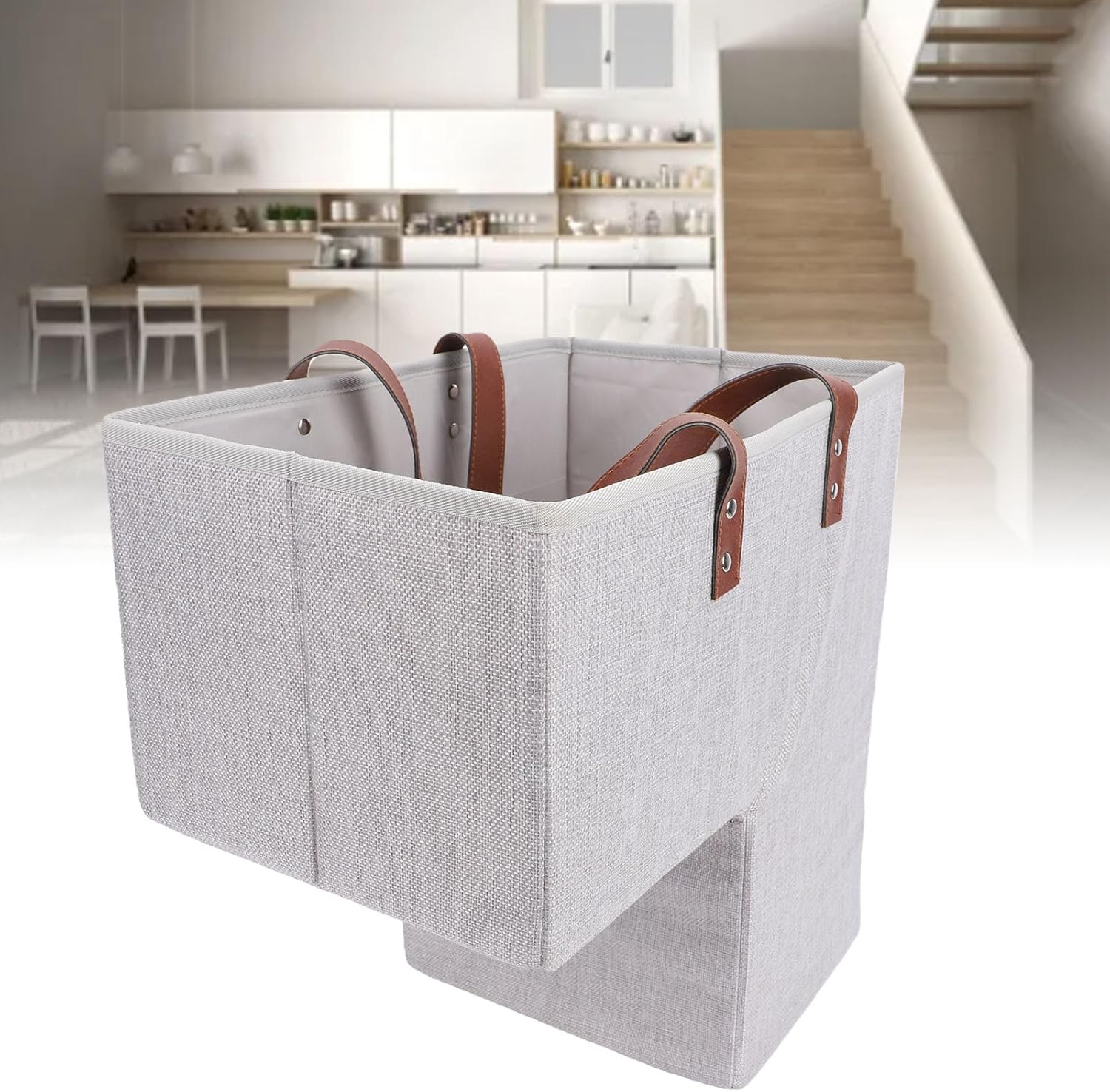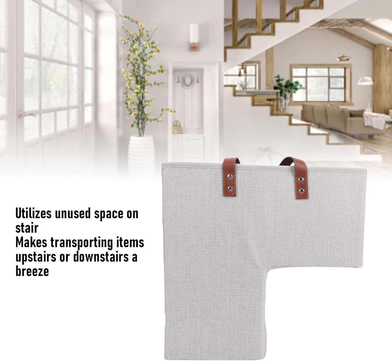 1. Reduce Clutter: Use our stair basket as a versatile storage for a range of items that need to go up or down the stairs at the end of the day or the next trip. Conveniently removes the unsightly clutter piling up on the steps and keeps your home safe and organized. 2. Innovative Storage: Our innovative storage stairway basket sits on two steps of the staircase. It's a brilliant way to utilize unused space. Handles can be tucked inside the bag to prevent tripping over handles. 3. Sturdy Material: The step stairs storage basket is made of canvas material, ensuring long lasting use without deformation, adding a touch of elegance to your home decor. 4. Spacious Storage: This stair basket fits well on stairs. With its large capacity, it can hold multiple items such as books, magazines, clothes, toys, shoes, socks, tools, and other clutter. 5. Portable Design: Staircase basket features handles for easy portability, allowing you to move it from staircase to staircase effortlessly. It's an ideal way to store all your clutter without sacrificing precious space on the stairway. Specification: Item Type: Stair Basket Material: Canvas Weight: Approx. 611.00g / 21.55oz Product Size: Approx. 41x41x21cm / 16.1x16.1x8.3in PackageList: 1 x Stair Basket 1 x Divider