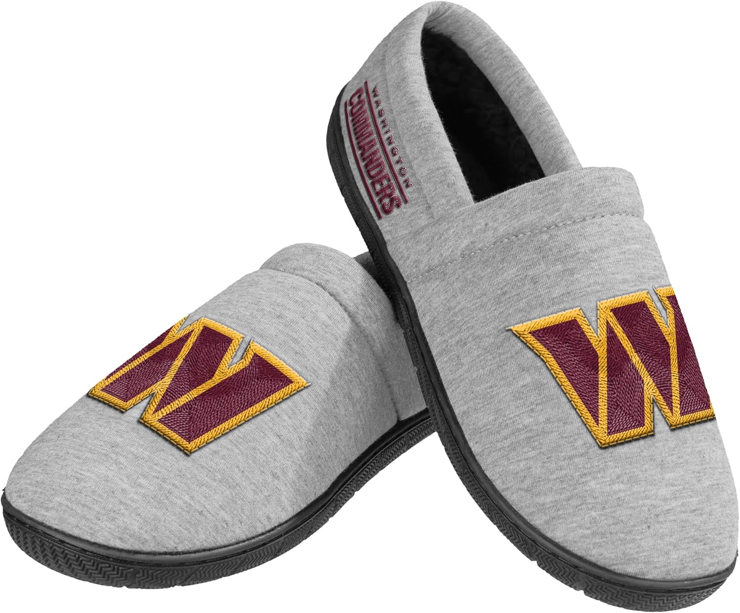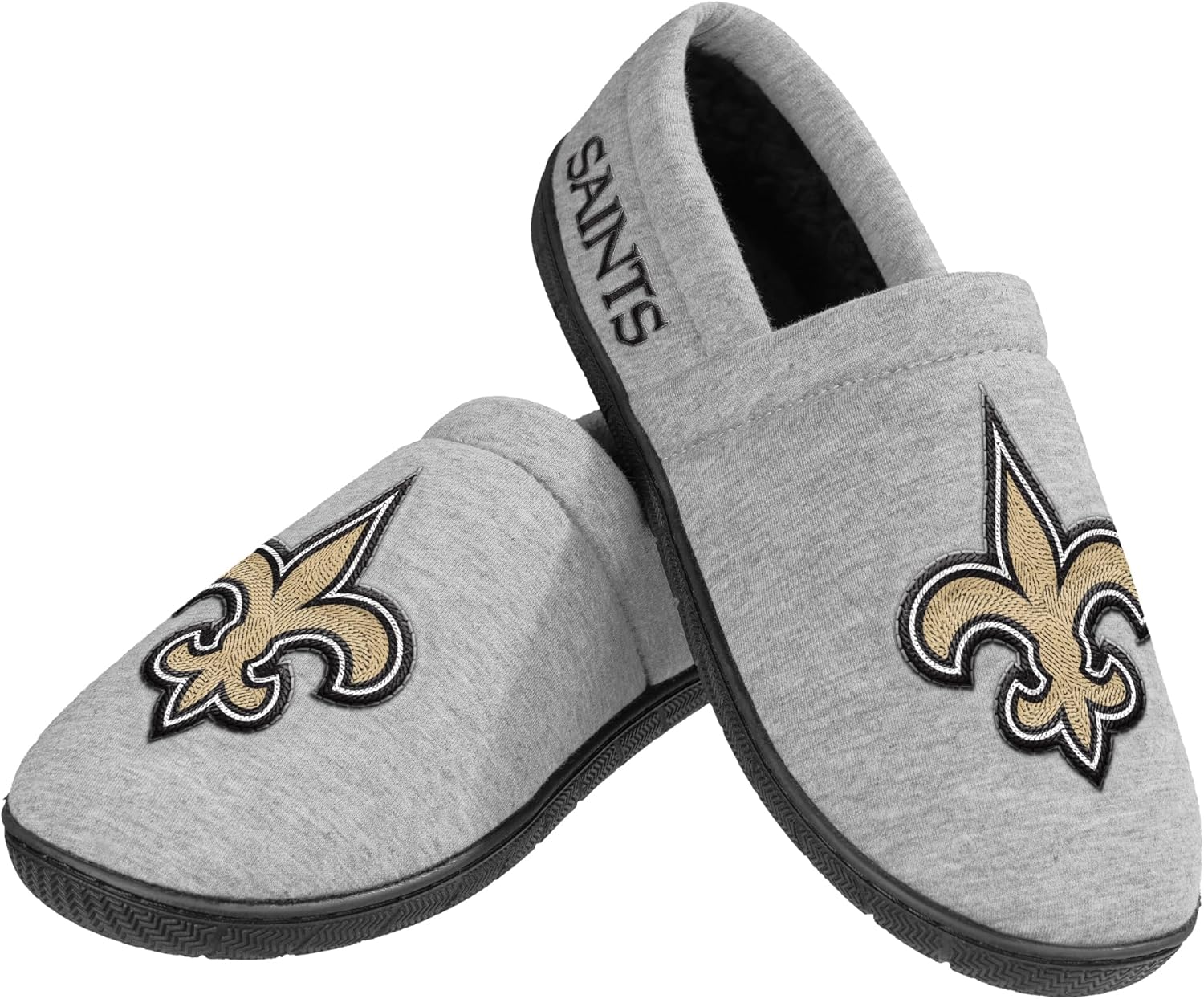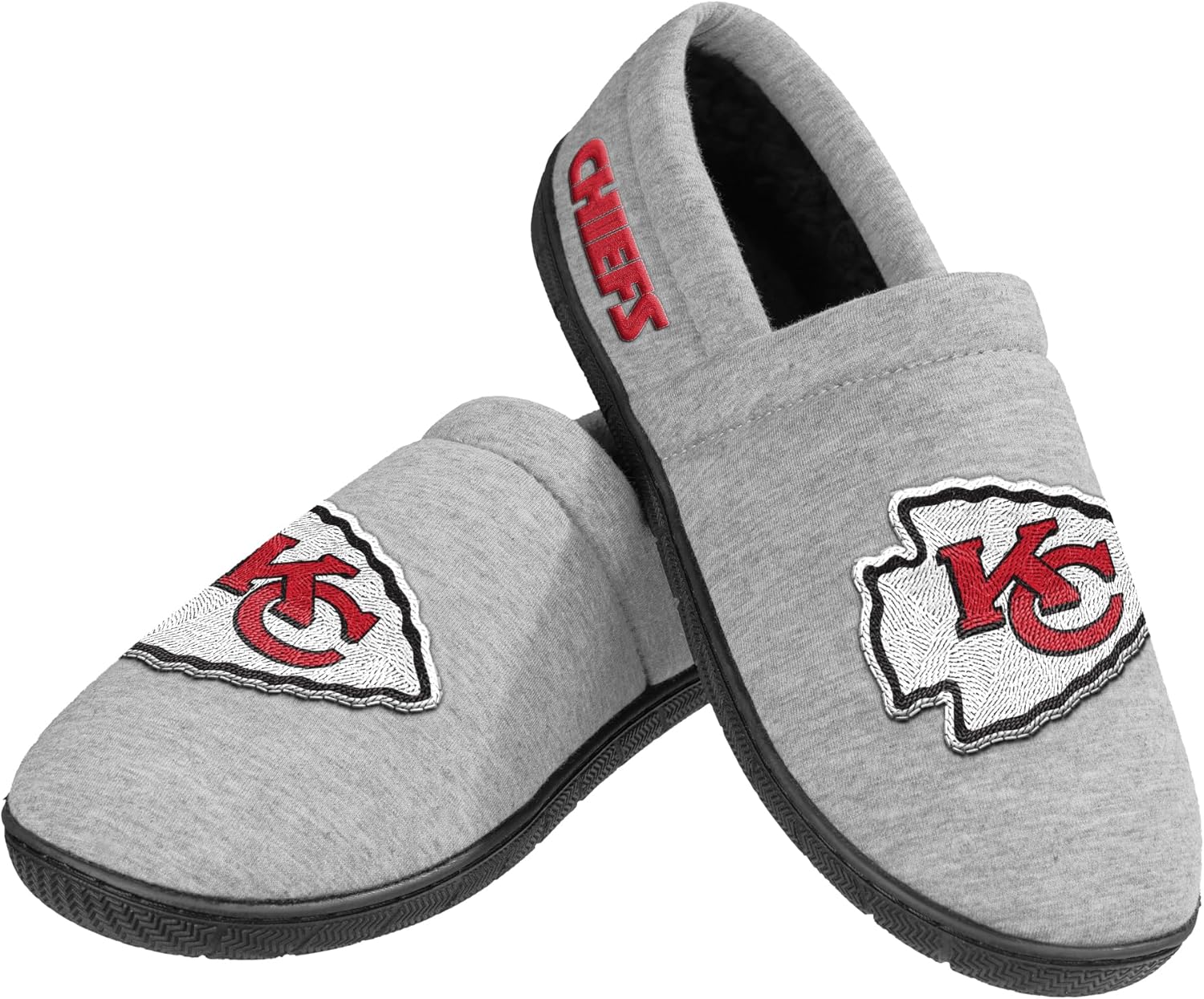 FOCO NFL MEN'S OFFICIALLY LICENSED EMBROIDERED PRIMARY LOGO GRAY TEAM COLOR FOOTBALL SHERPA MOCCASINS SLIPPERS - Slide into comfort and rep your favorite NFL team from the ground up with the FOCO NFL Men's Officially Licensed Embroidered Primary Logo Gray Team Color Sherpa Moccasins Slippers. Designed to bring warmth, grip, and fan pride into your home routine, these slippers are a go-to essential for football fans who don’t take days off — even when lounging. Each pair is crafted with a soft, heathered gray cotton-polyester blend upper that balances structure and breathability, and is accented with authentic team details. On the front, a large embroidered primary team logo makes a bold statement, while the team wordmark is stitched on the back heel for that extra fan finish. Inside, your feet will be treated to an ultra-soft black sherpa lining that insulates in colder weather while offering unmatched comfort. The slip-on moccasin style means they’re easy to put on and take off — perfect for winding down after a long day or gearing up for a relaxing weekend. Underfoot, the ridged rubber outsole is designed with non-slip functionality to give you traction across a range of indoor surfaces, from smooth tile to hardwood floors. Whether you're pacing during a tense 4th quarter or simply moving from couch to kitchen, these slippers offer stability and style. Available in men’s sizes Small through X-Large: Small (7–8), Medium (9–10), Large (11–12), X-Large (13–14). Whether you're shopping for yourself or gifting to a fellow fan, the FOCO NFL Sherpa Moccasin Slippers deliver premium comfort and NFL spirit in every step — a perfect addition to any game day lineup, lazy Sunday, or everyday routine.