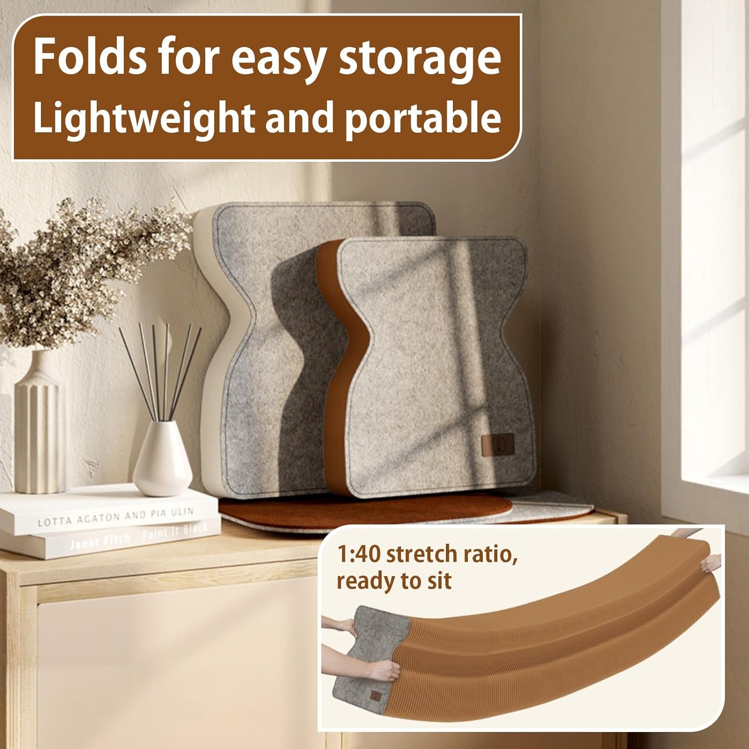 This innovative paper telescoping stool combines practicality with stylish design, making it an ideal choice for modern homes. The stool freely extends and retracts, effortlessly transforming into multiple shapes to suit varying spatial needs. When stored, it folds into a compact size, saving space and making it easy to carry. It serves as a creative side table in the living room, a footstool at the bedside in the bedroom, or a display stand in a shop. Product Specifications: - Material: Eco-friendly kraft paper + PU leather seat cushion - Structure: Honeycomb structure - Weight Capacity: 150kg per seat cushion - Features: Extendable, foldable, high weight capacity, multifunctional, easy storage - Suitable Scenarios: Living room, bedroom, storefront, office, etc. Product List: Folding Paper Stool x 1