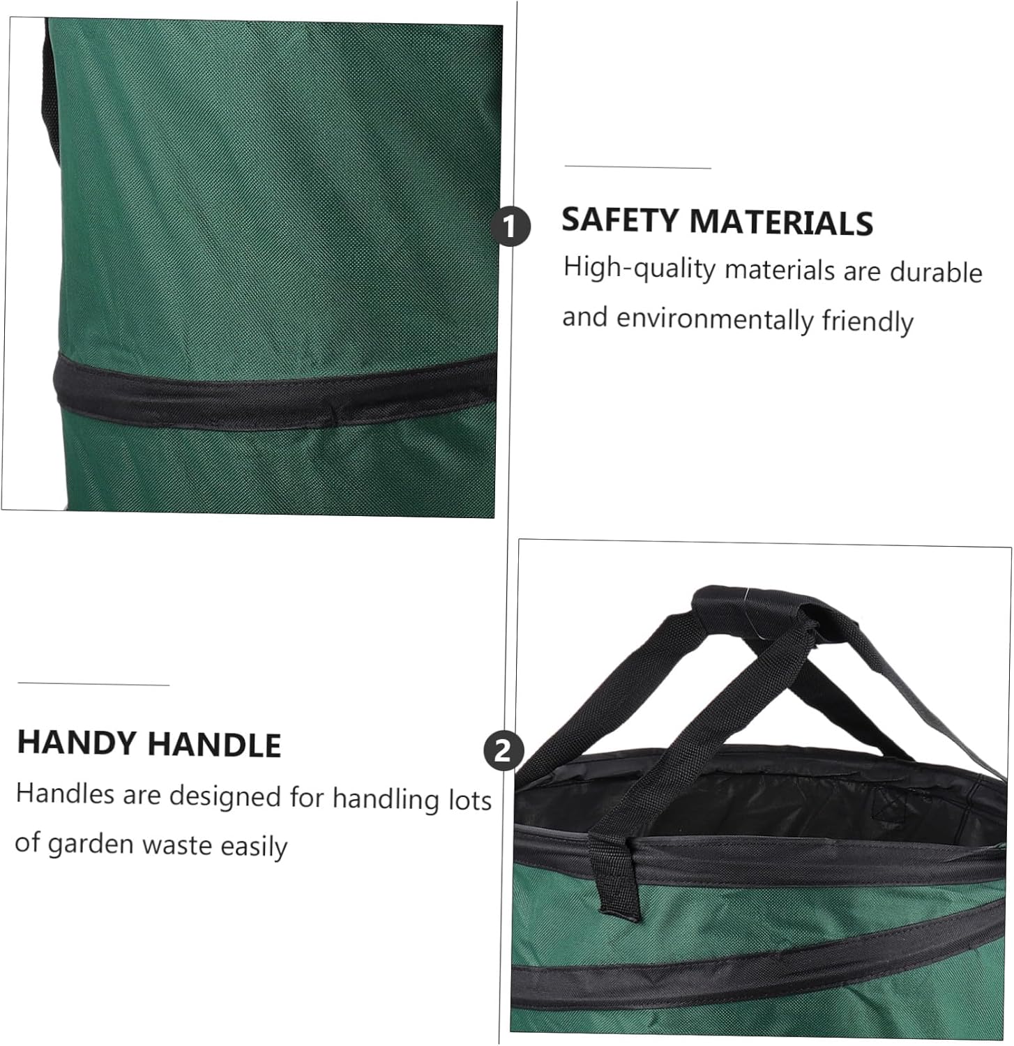 Package Include 1 x garbage storage bag Features -Product Info:Handheld leaf bag -Color: Dark Green Leaf Bag. -Size: 44.00X40.00X40.00cm/17.29X15.72X15.72in Yard Trash Bag. -Material: Polyester cloth Leaf Waste Bags. - Large capacity planting bag for easy sorting flower or grass planting Debris Container. - Use for recyclables, leaves, branches, grass and other garden waste Home Yard Trash Bags. - Perfect for using in your home balcony, garden or other outdoor places Garden Waste Bag. - Made of material, it is durable and use. You can safe to use it Gardening Planting Bag. - This product can be given as a great gift for your friends and families who love gardening. They will be very happy Waste Bag.Goods InformationGardening features foldable, large capacity.Yard Trash Bag Made of polyester cloth, it is tough, durable, and.Debris Container it’s perfect for camping, tailgating, backyard, picnics, beach trips, cook outs, yard waste, garage recycling and more.Portable Trash is convenient to move, more attractive to people.Yard Waste Bag for garden, balcony, farm DIY use