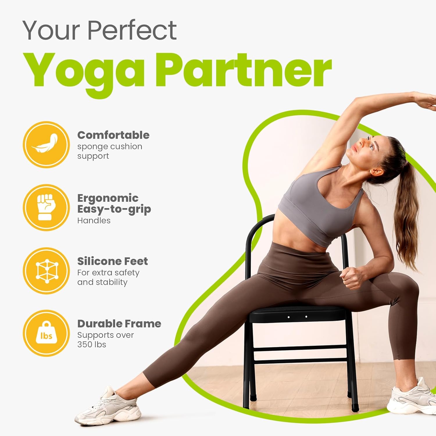 Foldable Yoga Auxiliary Chair with Training Guide Posters, Yoga Assist Handstand Chair with Detachable Lumbar Back Support for Stretching, Balance Training - Great Yoga Practice Tool