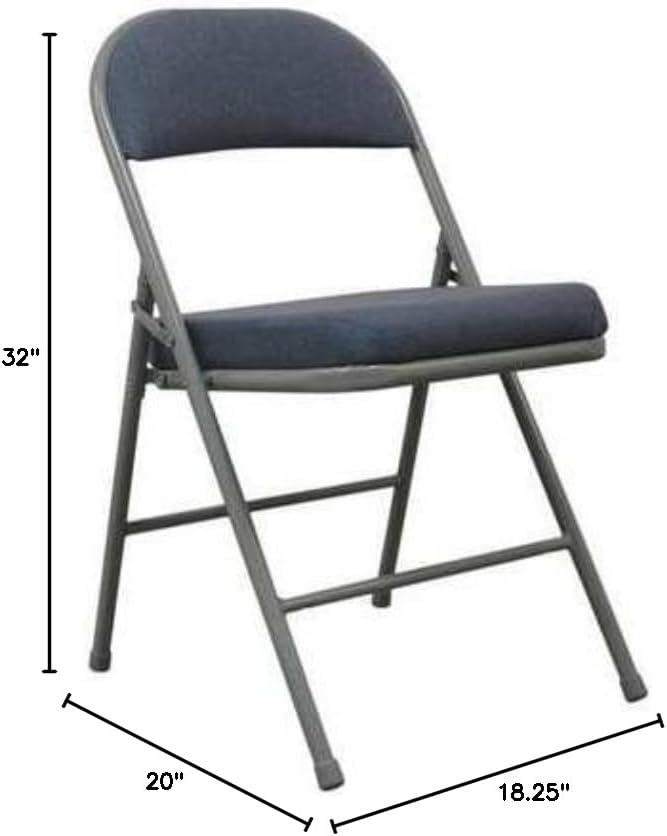 ' Folding Chair, Overall Height 32 In., Overall Width 18-1/4 In., Overall Depth 20 In., Seat Color Blue, Back Color Blue, Frame Color Gray, Seat Material Fabric, Back Material Fabric, Frame Material Steel, Arm Style No Arms, Weight Capacity 300 lb. '
