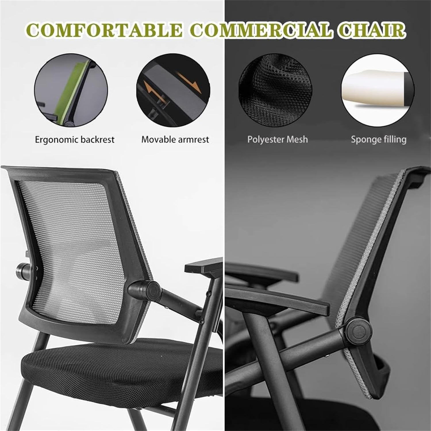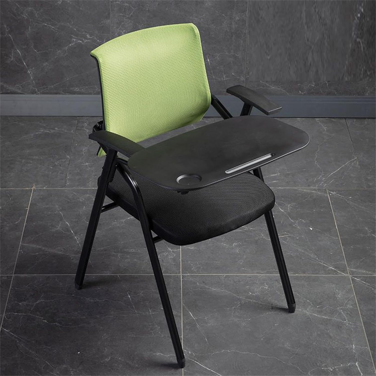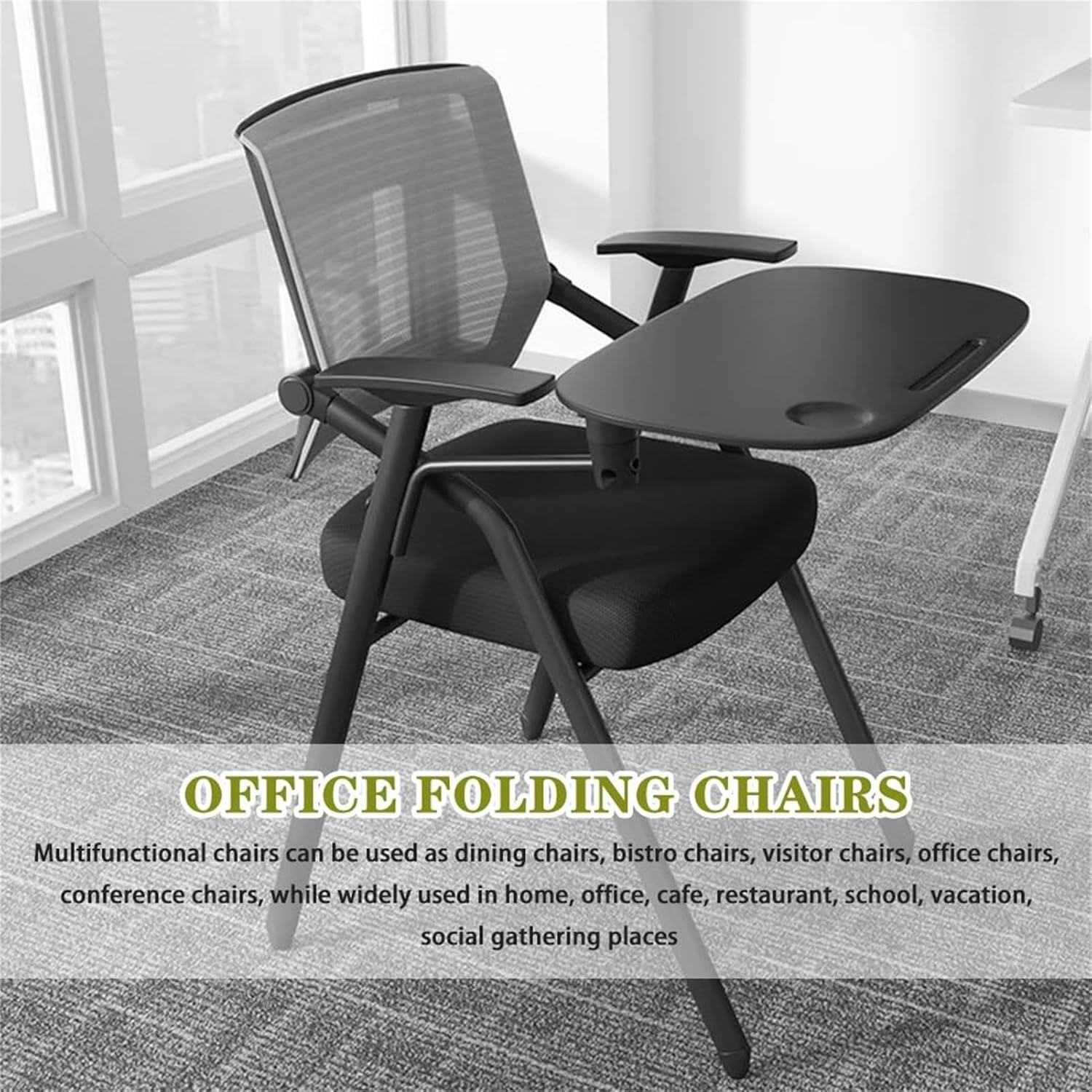 Useful conference chair- The event chair has a rotating writing board with a size of 32*52CM, which is larger than the writing boards on the market and can hold more thingsName: Folding ChairMaterial:Chair frame: Metal, PPCushion backrest surface: Polyester MeshFilling: High resilience spongeSize:Expand Size: 49*57*86cm/19.3*22.4*33.8inchesFolded size: 60*20*90cm/23.6*7.8*35.4nchesLoad bearing: 100kgApplicable scenes: Indoor, outdoor, kitchen, office, wedding, party, picnic, dinner, guest, meeting, visit, cafe, school, living room, bedroom, study, garden, campingPacking list: Event Chair * 1