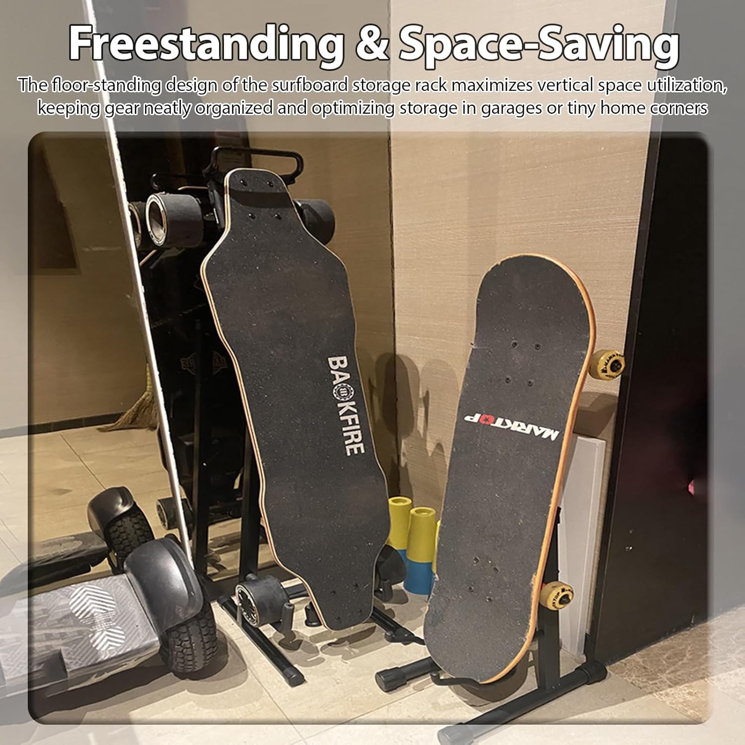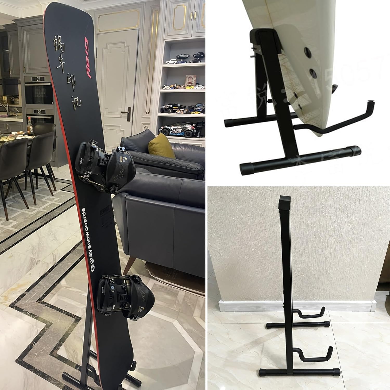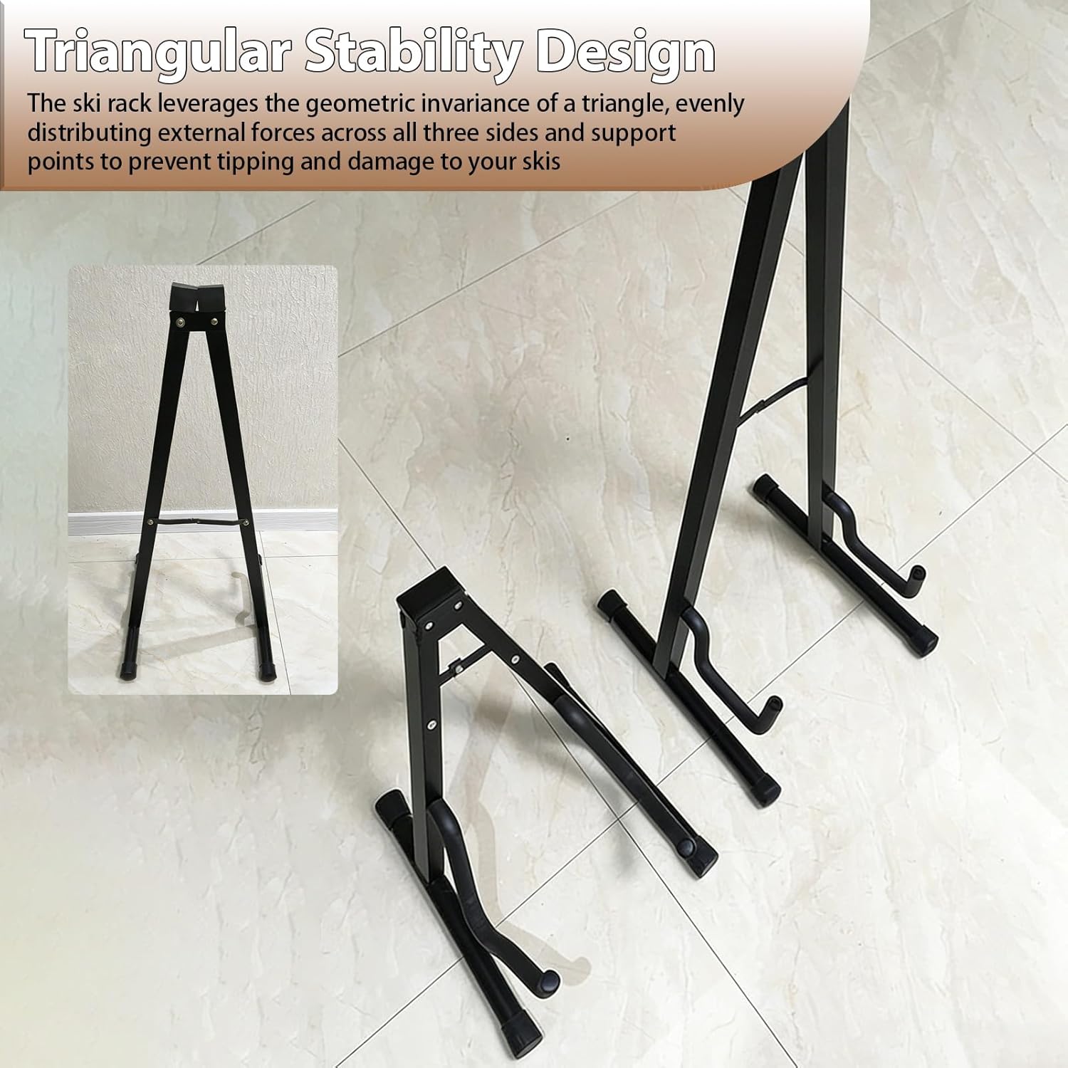 - Tired of traditional ski racks taking up too much space, being hard to carry, unstable, and scratching your skis?- This ski rack maximizes vertical space utilization with its compact design, folds for easy transport, features a sturdy triangular structure, and includes foam sleeves to protect your skis from damage.Specifications: - Material: Steel- Color: Black- Small Size Width: 29cm (11 3/8")- Small Size Height: 39cm (15 3/8")- Large Size Width: 32cm (12 5/8")- Large Size Height: 72cm (28 3/8")Features:- Sturdy triangular construction effectively prevents tipping.- Maximizes vertical space utilization.- Heavy-duty construction supports additional equipment.- Foldable for easy carrying and storage.- Sponge sleeve on its surface prevents damage to the skis.- Accommodates snow gear of all sizes.- Durable steel construction ensures stable weight-bearing.- Effortless assembly in just 3 minutes.Packaging List:- 1 x Ski & Snowboard RackNote:- Manual measurement may have length error, please understan.- Artificial shooting may cause a slight color difference, please prevail in kind.