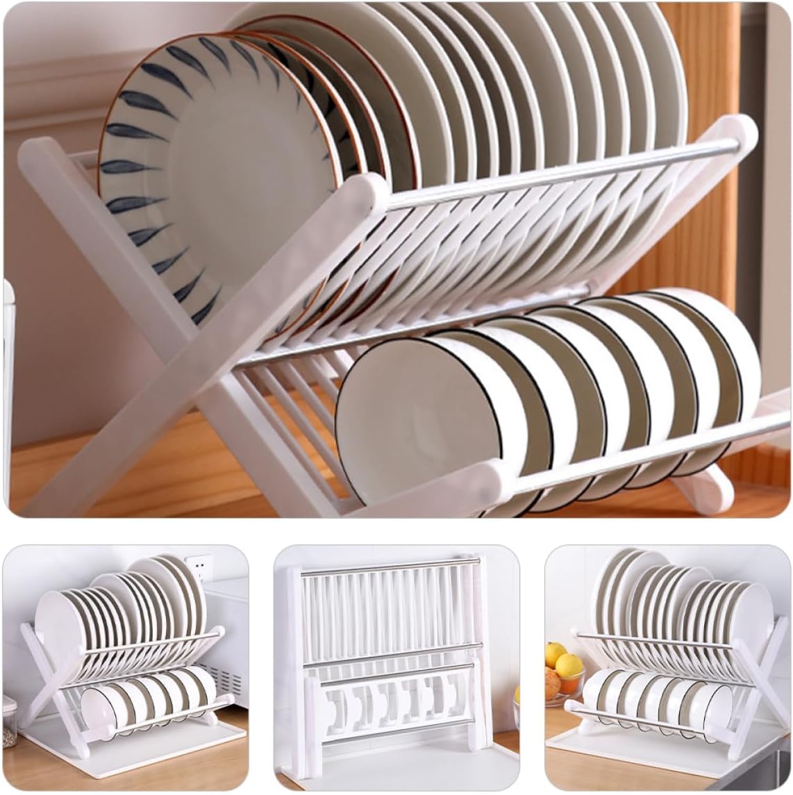 Package Include 1 x Dish Drainer 1 Characteristics -Size: 37.50X33.00X25.50cm/14.74X12.97X10.02in -Material:PP, stainless steel -Color:White -Product Info:Kitchen dish storage rack -Easy to clean, just use water to wash it, and then it will be dry quickly. Can be used for storing dishes and draining, very multi-functional Dish Storage Rack. - This Dish Strainer Rack has a smooth surface, which is very convenient for you to wash and store plastic folding dish shelf. -Can be used to store dishes, bowls, plates, suitable for families, hotels, restaurants plate drainer kitchen counter. -Drainage design, keep the dishes dry at all times. Compact design, it is easy to store when not in use kitchen drying rack. -Selection of reliable material, stable structure, easy to clean and use, .Goods Informationdrying rack kitchen It is made of good material, which is for using.dish strainer folding This bowl and plate storage stand is easy to use, suitable for home, restaurant, hotel and so on.multi-layer dish rack dish drainer Are you still upset by the kitchen utensil clutter? This well-made organizer will help you to solve the problem