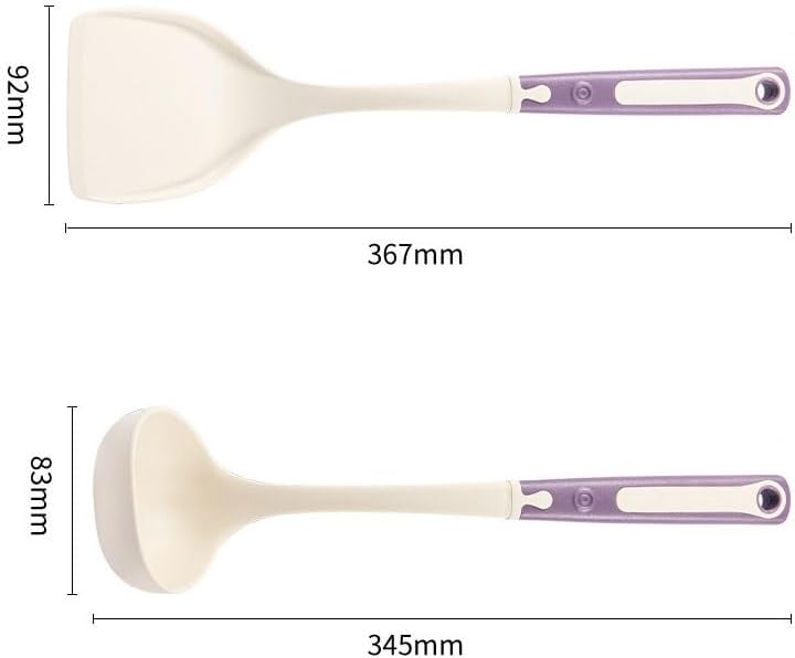 Product name: Spoon and spatula setMaterial: Silicone + nylonSize: As shownColor: As shownFunctions: Cooking, bakingThe set includes: Steak spatula, soup spoon, ladle, etc.Shoulder bag: Shovel and spoon set * 1 set (excluding display items)Attention:1. Due to manual measurement, please allow 1-2cm error. Please understand, thank you2. The actual color of the product may be slightly different from the color shown in the picture. Please refer to the actual product.
