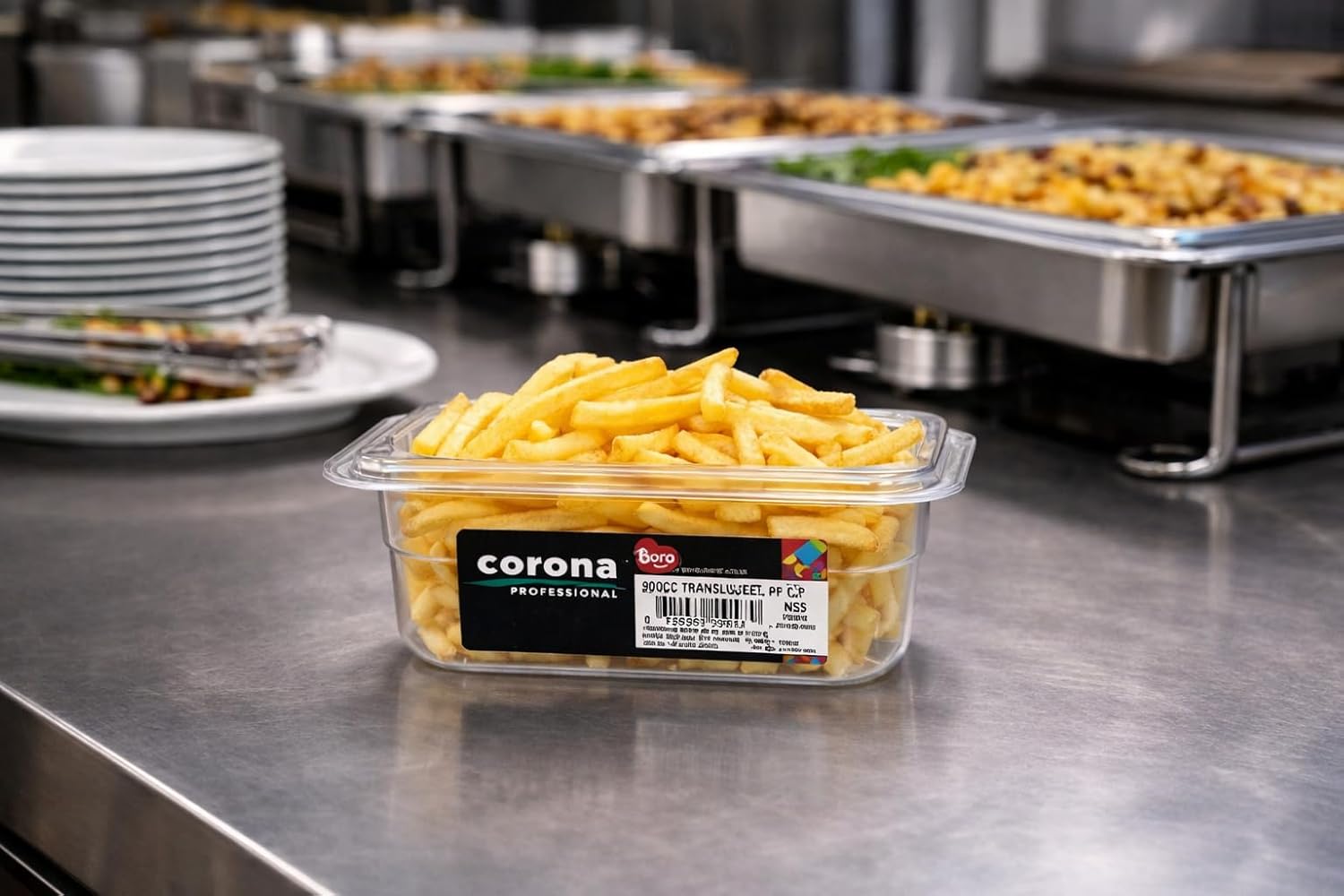 CORONA Clear Polycarbonate Food Pan 1/9 – 2.5" deep: The Ultimate Solution for Salad Bars. Elevate your culinary presentation with our Transparent Polycarbonate Food Pan, perfectly engineered specifically for restaurants, catering events, parties, and professional food service operations, this versatile food pan is the quintessential addition to your kitchen. What sets our food pan apart? Crafted from durable Polycarbonate, it’s not just exceptionally lightweight; it also boasts remarkable scratch resistance, ensuring that your display remains crystal clear even after repeated use. But functionality doesn’t stop there: this food pan is dishwasher safe, making cleanup a breeze after busy events or hectic service days. Versatility is key in the fast-paced world of hospitality. Our 1/9 size 2.5” food pan is expertly designed for optimal transportation and serving display. Its stackable feature allows for efficient storage, saving precious space in your kitchen. Whether you’re serving salads, desserts, or garnishes, this food pan holds its shape and integrity under pressure. Temperature control is critical in food service. Withstanding temperatures ranging from a frigid -40°F to a sizzling 210°F, our clear Polycarbonate food pan adapts effortlessly to various environments, making it ideal for both hot and cold dishes. Investing in our Clear Polycarbonate Food Pan means investing in quality, efficiency, and sophistication for your restaurant or catering business. Make a lasting impression on your guests—choose a food pan that not only enhances your presentation but also meets the rigorous demands of professional kitchens. Transform your food service experience today with the Clear Polycarbonate Food Pan 1/9 – 2.5" deep. It’s time to showcase your culinary creations in style!"