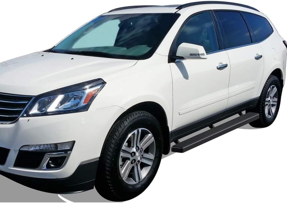 Fitments2007-2017 Chevrolet Traverse Sport Utility 4-Door 2007-2016 GMC Acadia Sport Utility 4-Door (Excl. Denali)2007-2009 Buick Enclave Sport Utility 4-Door 2007-2010 Saturn Outlook Sport Utility 4-DoorIntroductioneBoard running boards fit good and look good on your truck. These custom fit running boards have a simple, clean design that put bulky and over styled nerf bars to shame. The eBoard's lightweight yet durable aluminum frame supports up to 500 lbs without bending. Having full length and non-slip tread, these running boards offer safe footing and superior access to your vehicle. Crew Cab, Double Cab, Standard Cab, or Extended Cab - we have got you covered. Double check the compatibility of this item with your truck by clicking the see all vehicles this product fits link. Available in 3, 4, 5, 6 inch and a black powder coated or polished aluminum finish, eBoard running boards will outfit your truck in style.SpecificationMaterial: Extruded AluminumFinish: Black Powder CoatedStyle: Flat profile and straight - Full length step padInstallation: No drilling required, bracket custom mountItem Offered2pcs Aluminum Running BoardsAll Necessary Mounting HardwaresInstallation Instruction
