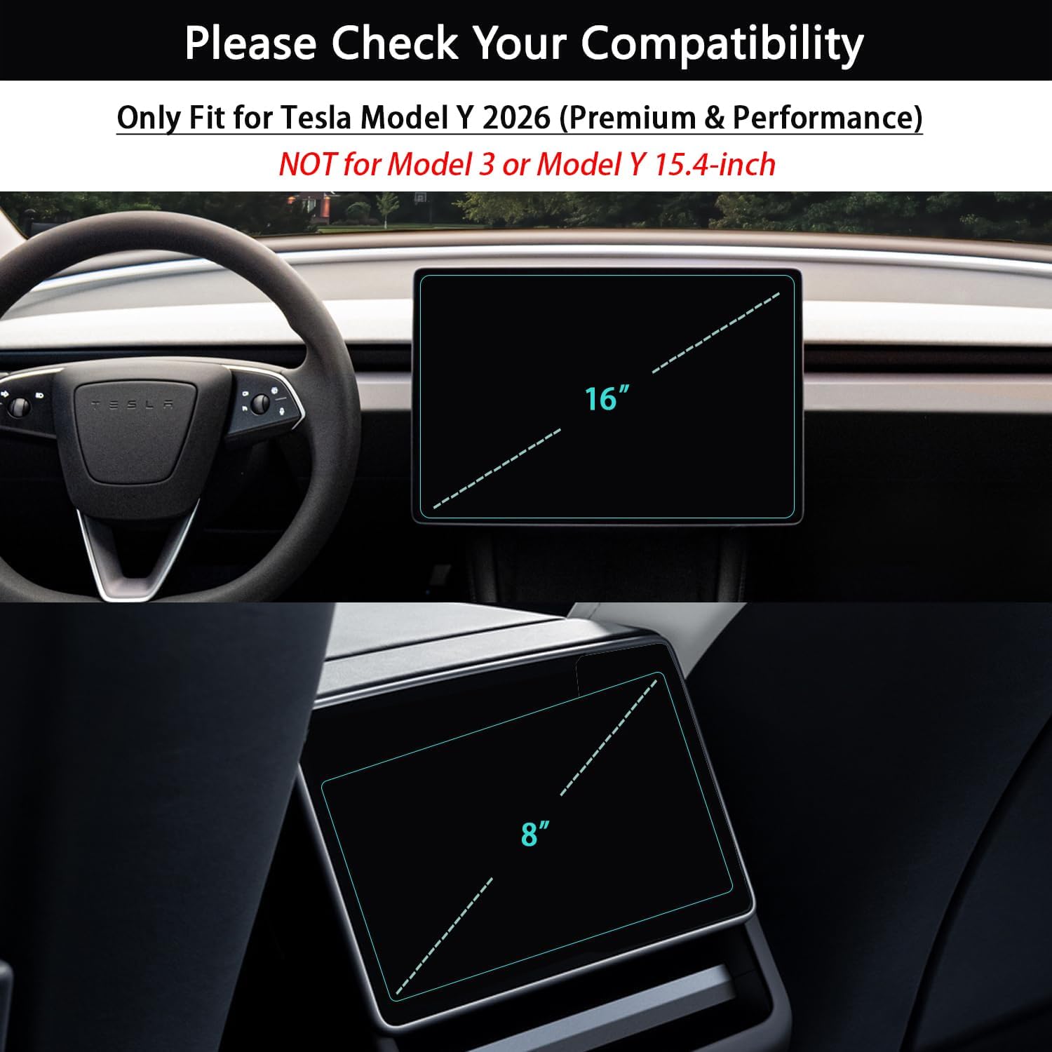 | Compatible Phone Models | For Tesla Model Y 2026 (Premium & Performance) 16" + 8" |