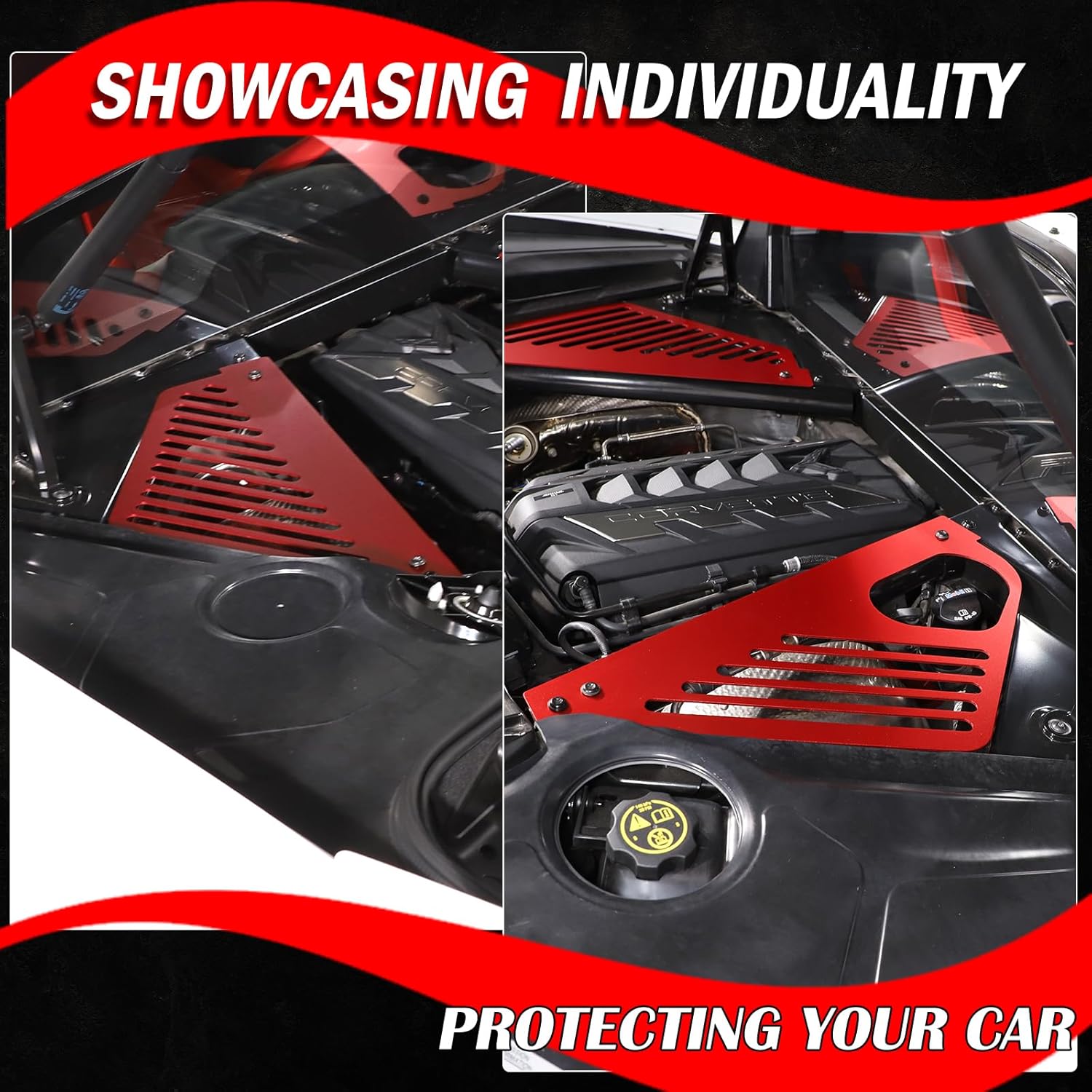 Suetlcoity offers a wide range of accessories to enhance and upgrade both the look and function of your vehicle . We sincerely appreciate your decision to purchase our products, we always committed to providing the high-quality, safe automotive decorative products and the excellent ,professional and customer service.📌Item Description:Applicable Model: compatible with Corvette C8 Stingray Coupe Z51 2020+,for C8 Z06 2023+,NOT WORK for C8 Convertible/HTC/E-RAY 2020+Condition:Brand NewMaterial: Made from stainless steels material .Good abrasion resistance and high temperature resistance, not easy to deform under high temperature,not easily rusted,corrosion resistance, not easy to fade.Aesthetics:Adds a distinctive color, upscale, unique and refreshing, makes your engine compartment location look better. 📢Attention:Please check whether this item can fit on your car before purchasing.if you meet any problems when using our devices, please feel free to contact us and our staff will reply in 24hrs.💡Installation method:Step1.Wipe the surface where you want to stick. Keep dry and clean .(Very important)Step2. Determine the installation location and then make comparison of the product and installation location. If the product doesn’t fit your vehicle, please contact us immediately and do not install.Step3.Remove the protective film from the Double-sided tape on the back of the product. For better results, it is recommended to heat the double-sided tape with a hairdryer or lighter.Step4.Paste the accessories in the corresponding position and press it with your hand to make it more solid.🎁Package Include:2pcs/set of Suetlcoity Engine Compartment Left Right Protection Leakproof Cover TrimSuetlcoity will also produce other automotive accessories, please check our store for details.