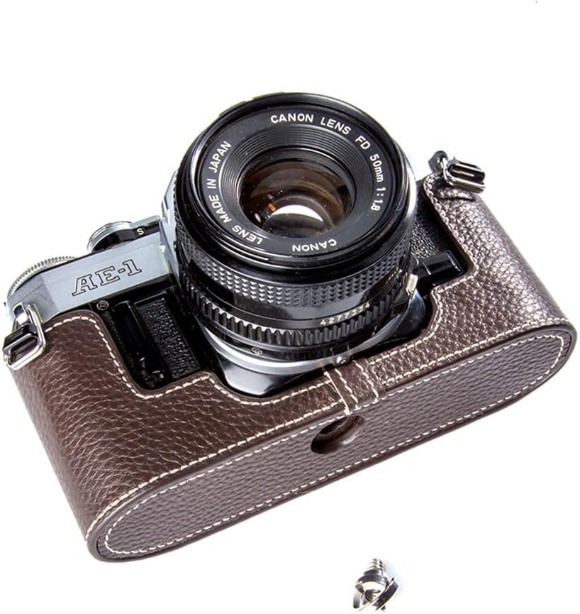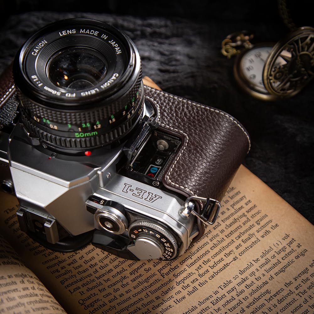 Selected high-quality first layer of leather production,pure hand-made technology,with every step from cutting to stitching and shaping performed manually. The meticulous craftsmanship embodies the charm of handcrafted goods.modeling retro simple, clean lines, the semi-package design perfectly fits the camera body,taking into account both practicality and aesthetics, making the shooting process more smooth, does not affect the photography operation, can be directly fixed on the tripod, and does not need to remove the leather case, it is fitted with 3/8 screws to ensure it does not fall off and is suitable for Canon AE-1
