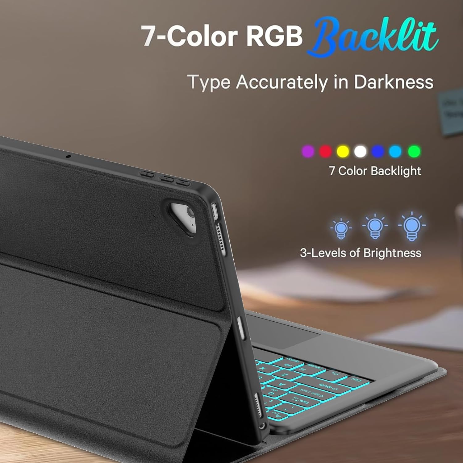 for iPad Pro 12.9 Case with Keyboard 2nd/1st Generation 2017/2015, 7 Color Backlit, Detachable Bluetooth Keyboard Multi-Touch Trackpad, Folio Smart Leather Cover with Pencil Holder for iPad Pro 12.9''