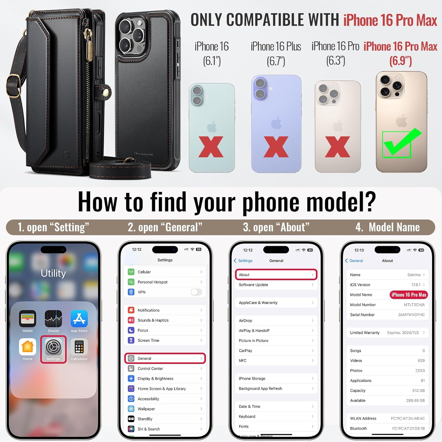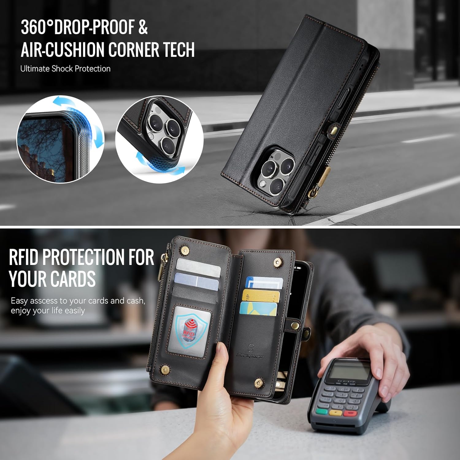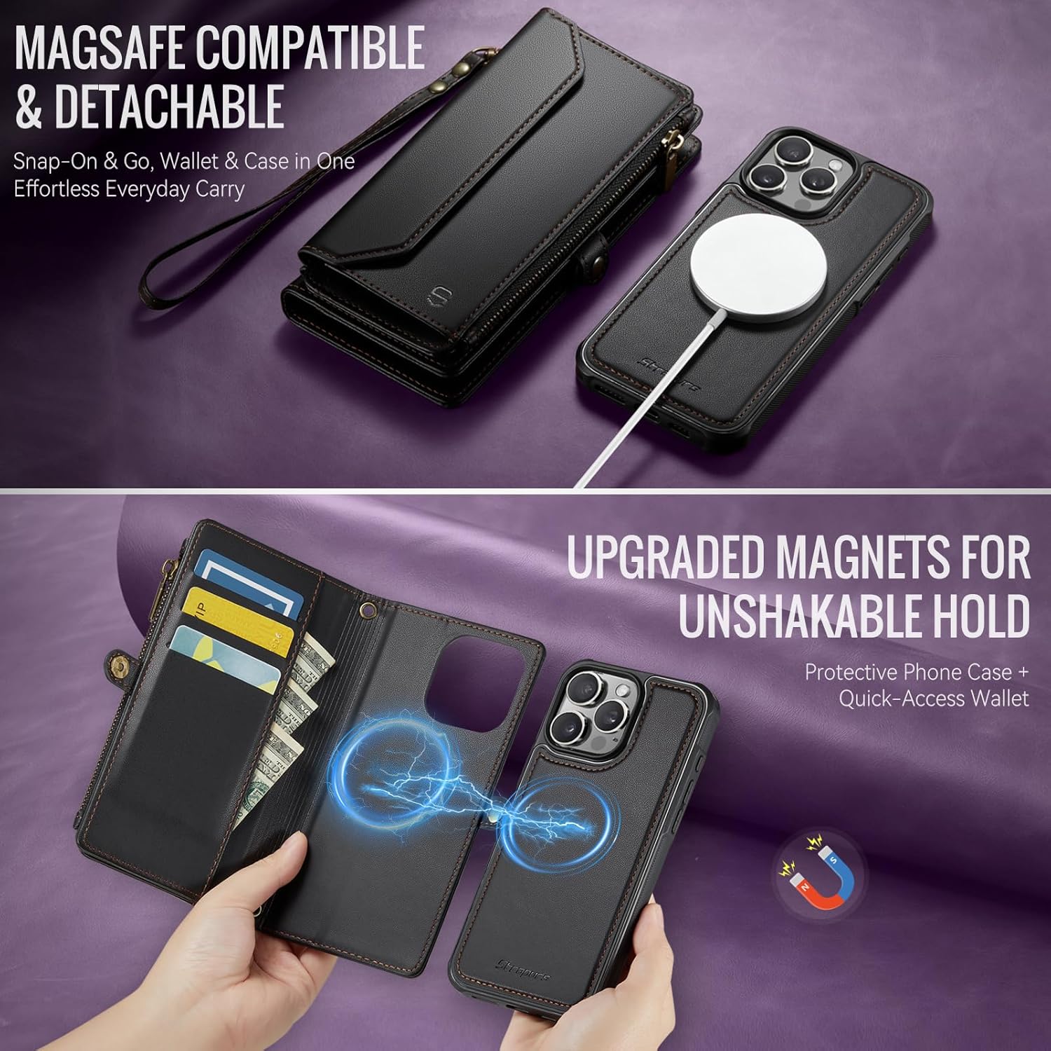 | Additional Features | 1 Magnetic Flap Pouch, 1 Zipper Pocket, 1 Cash Pocket, 2 in 1 Magnetic Detachable, 9 Card Slots With RFID Blocking, Compatible with MagSafe, Crossbody Lanyard & Wrist Strap |