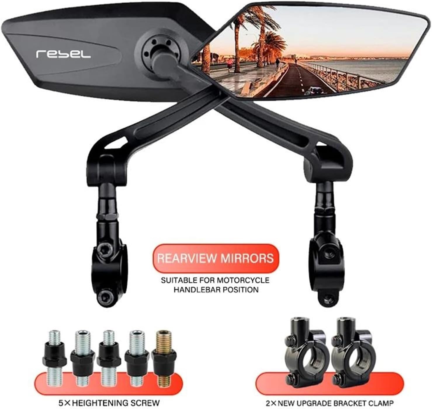 DescriptionQuantity : sold by pair,left and right.easy to install.Feature:Large mirror, wider vision and safer driving.smooth and beautiful lines.Fitment :For:This item is universal, Provide M8/M10 screwsPackage:1 pair Motorcycle Rearview Mirror ( Left & Right ).A pack of screws and related accessoriesUniversal All Motorcycle Mirror ScooterProducts can be installed and used without modification, easy to install, no installation instructions.does not easily discolor and does not rust.Fashion design appearance, excellent technology is more suitable for your bike.【Wide field of vision】The Wing Mirrors provide the driver with a wide, high-resolution field of vision and removes blind spots so the driver can see cars and approaching obstacles.