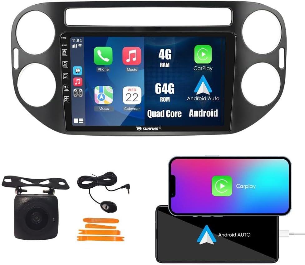 for VW Tiguan 2007-2016 Car CarPlay Android Auto Navigation Stereo GPS Radio Reverse Camera Display 9" IPS Touchscreen Headunit Tablet Pad Media Player, if Applicable Quad Core 2G+64G Silver