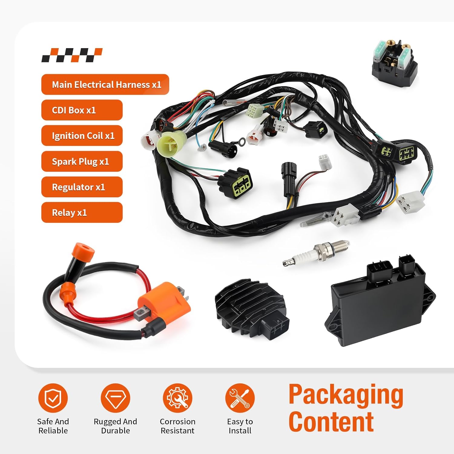 Manufacturer Part # 5YT-82590-00-00Replacement Part # 5YT-85540-00-00Package includes : CDI Box x1Ignition Coil x1Spark Plug x1Main Electrical Harness x1Regulator x1Relay x1Fitment : For YamahaRaptor 350 YFM350R 2005-2013Raptor 350 YFM350RSE2 Special Edition II 2007Raptor 350 YFM350RSE Special Edition 2005-2007Raptor 350 YFM350 2004