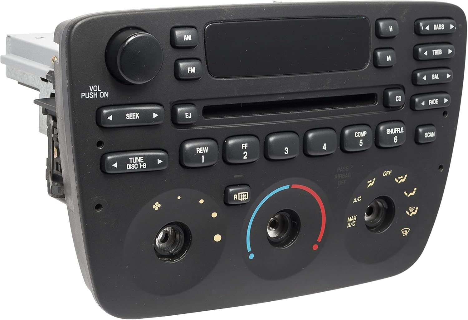 This is for a 2005-2007 Ford Taurus radio AM FM CD with manual heater controls. This radio has the airbag light so it will work in the newer 2005-07 models and can also be used in the older 2000-2004 Taurus and Sables. All heater controls and knobs are included as pictured. No codes required. If installing this in a 2000 model year Taurus or Sable, you may have to switch out a heater control with one of your originals as the plugs are different on some. It is one screw and 2 minuted to complete this swap. Please contact seller with fitment or function questions.