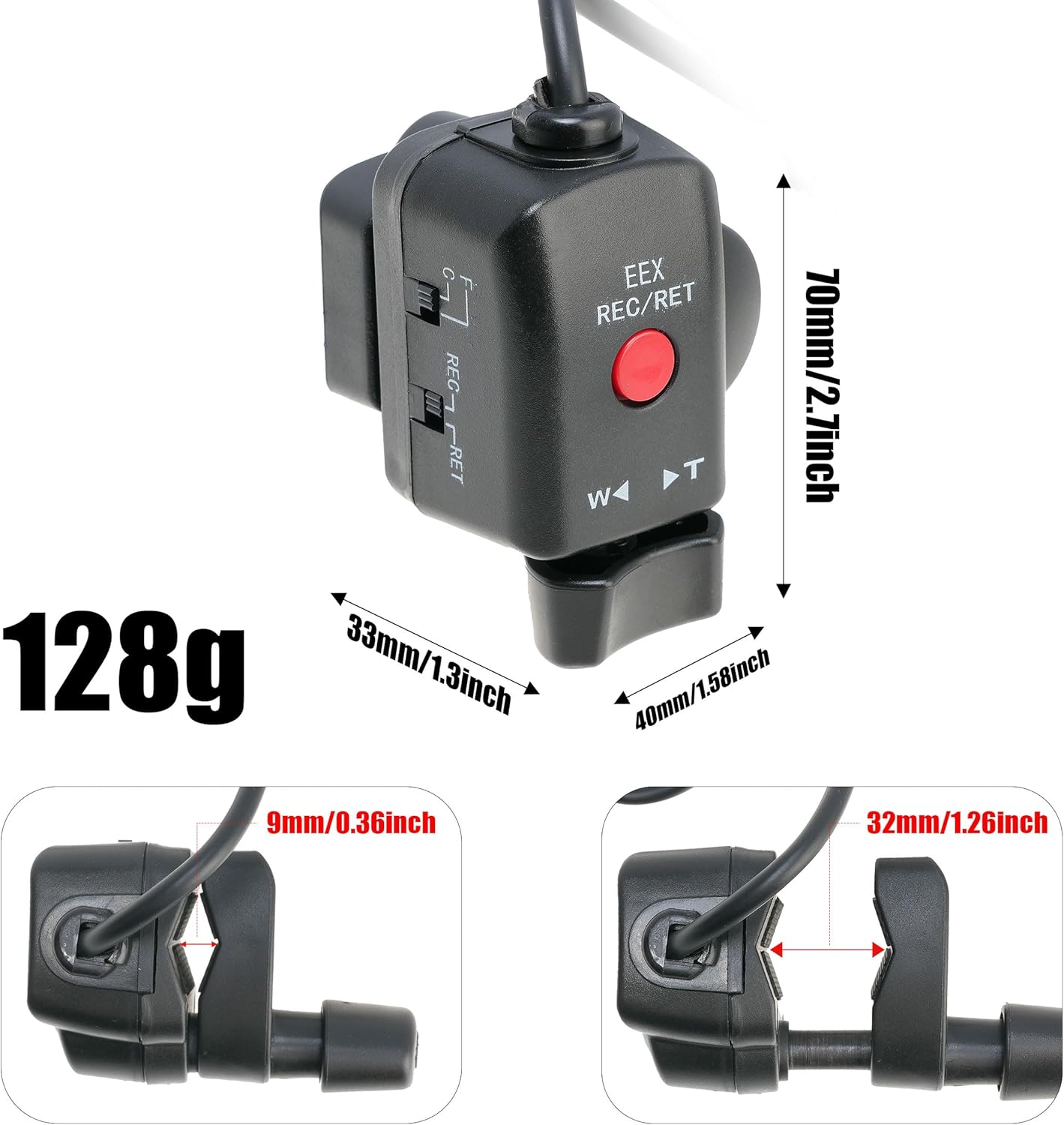 Remote control with 8-pin connector for Sony Camcorder. Supports Zoom Control and Recording Start/stop This remote control with 70cm cable is a wired remote commander for Sony camcorder. The remote controls various operations to be performed without handling the camera, therefore eliminating camera shake and improving image quality results and convenience. Toggle switch for quick change for Canon lens (C) and Fujifilm lens.(F) Supports recording (REC) and playing back.(RET) Zoom control and recording start/stop functions. No Battery needed For SONY PMW-EX1 PMW-EX3 PMW-EX1R EX280 EX260 X280 EX330 EX330K EX330R EX330L PMW-F3 Camera,etc. It can be fixed on bar of 10mm to 30mm diamete,lock through a big knob,safe and easy. Package includes: 1 * Zoom Remote Commander Control with 8-pin connector