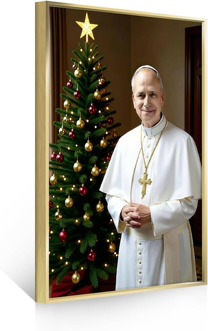 Present a timeless symbol of faith and leadership with this striking framed portrait of 1Pope-Leo XIV.This meticulously crafted artwork captures the profound presence of one of Catholicism's influential figures,making it a centerpiece of reverence and historical appreciation. Praying to him will bring you good luck.