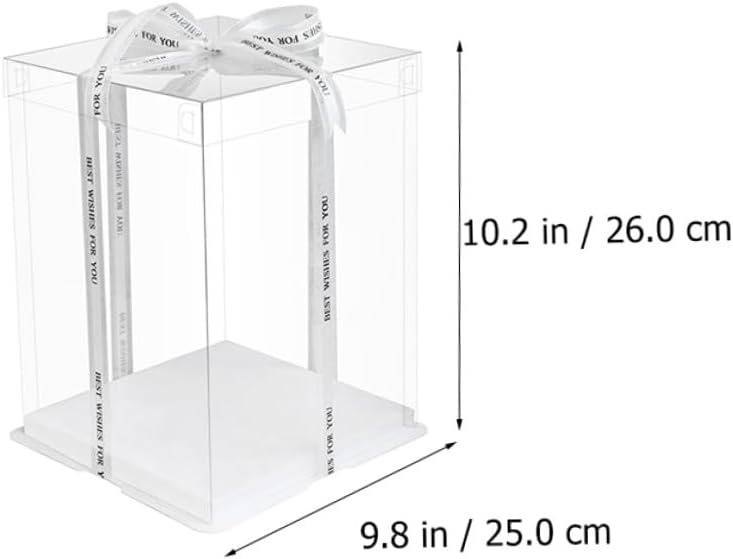 Package List 5 x cake packaging boxes Features -Product Info:Birthday Cake Box - Color: White ( color for ribbon). - Applicable: for 8 inch cake Cake Container. - Material: Food grade white card, PET. - Size: 26.00X26.00X25.00cm/10.22X10.22X9.82inch. - They can be used for shower, birthday party or other party Cake Wrapping Case. - Featuring reusable, it can be used for times and easy to clean Cake Storage Container. - Simple and practical design, and easy to use and carry Baking Cake Container. - Transparent design can show off your cakes inside without exposing to the air Cake Carrier. - , environmental protection, safe and .Goods DescriptionCake Carrier Environmentally friendly material, safe and to use.Food Packaging Boxes This cake box can help you to pack your cakes and transparent design allows you see the cake directly.Cake Storage Container Sealing design can prevent leakage effectively.Cake Wrapping Case With the ribbon handheld design, this cake box is very convenient to carry.Square Storage Container This is a practical cake box