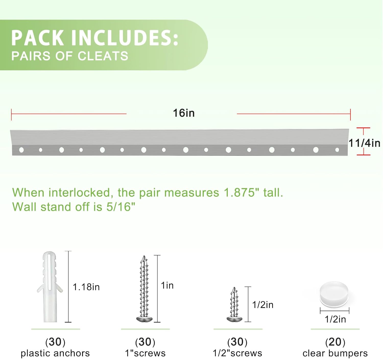 | Included Components | French cleat picture hanger ,self-tapping screws ,self drilling screw, expansion rubber plugs, clear bumpers. |