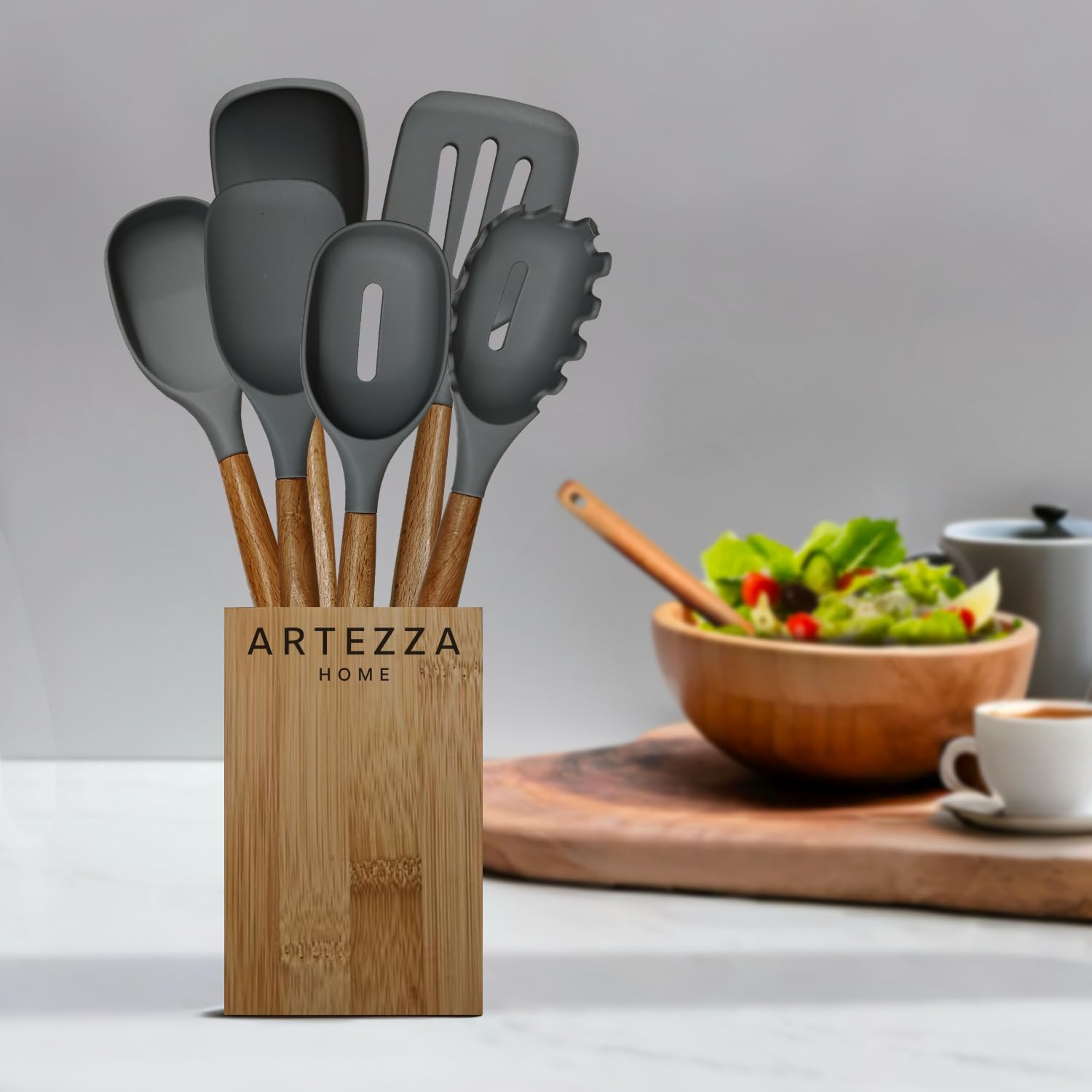 Enjoy the perfect balance of coffee brewing and everyday cooking essentials with this thoughtfully designed Artezza Home Bundle. Featuring a sleek glass French press coffee maker paired with a premium grey silicone kitchen utensil set, this bundle is ideal for modern kitchens, coffee lovers, and gift-giving. The French press is crafted from durable glass with a stainless steel plunger for rich, full-bodied coffee or tea. Complementing it is a complete 7-piece utensil set made from heat-resistant silicone with smooth wooden handles and a natural bamboo holder for organized countertop storage. Whether you’re starting your morning with fresh coffee or preparing meals throughout the day, this bundle delivers both functionality and style in one convenient set.