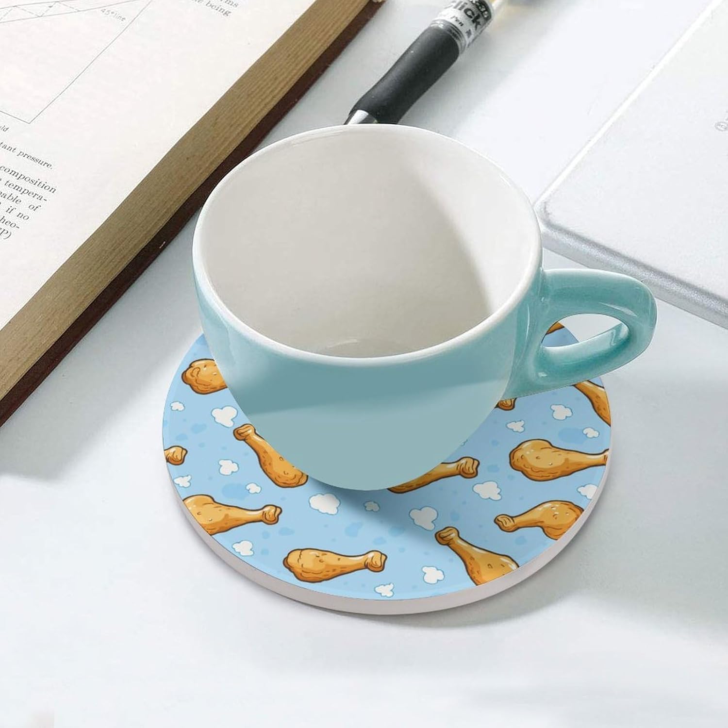 coasters,coasters set of 4,coasters set of 6,cute coasters with Funny Pattern Printed Ceramic Coasters with Cork Base Cup Holder Absorbent for Drinks Coasters Round Tabletop Protection Mat Decorative Cute Coffee Cup Beverage Coasters