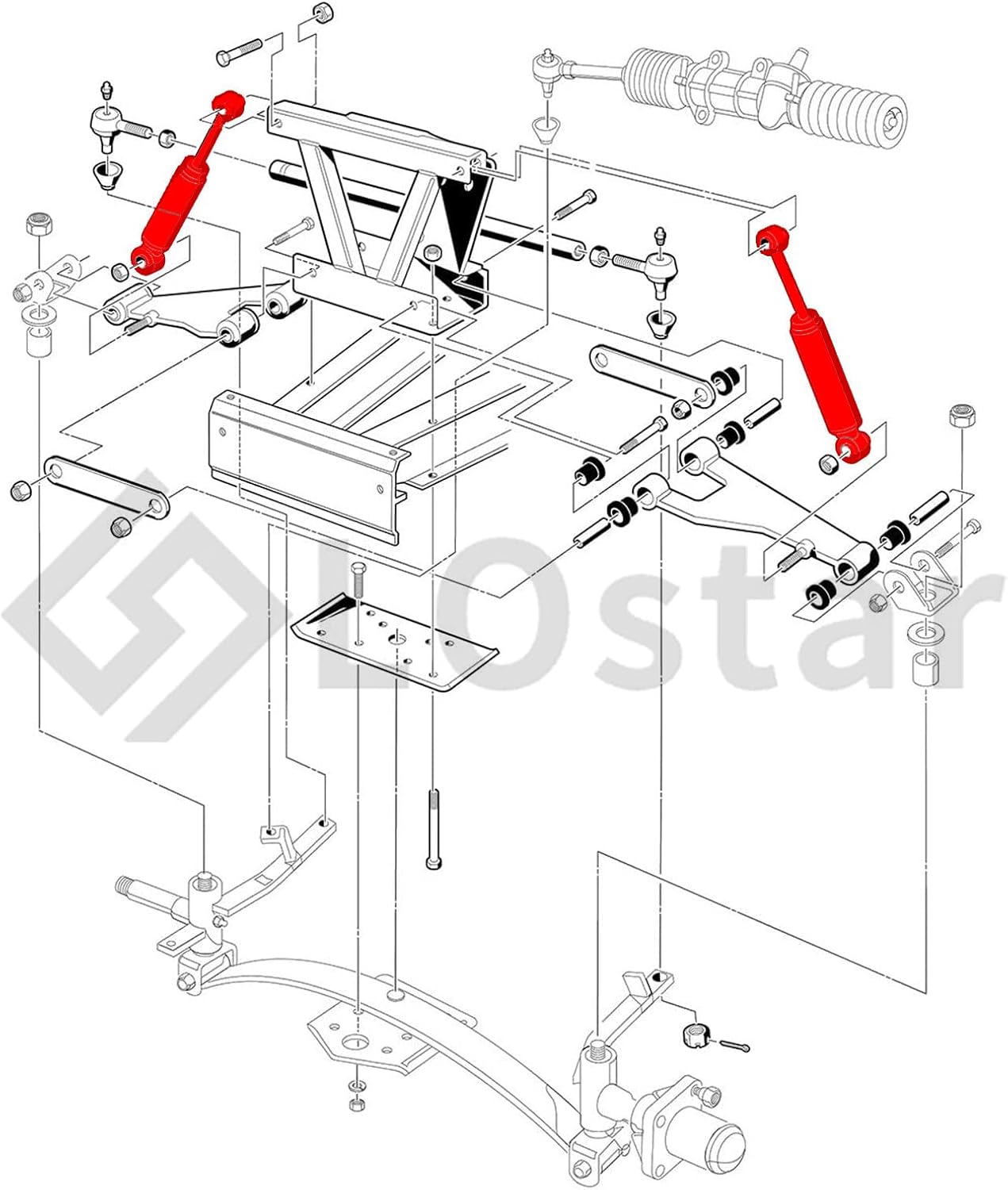 This shock absorber set provides front and rear shocks replacement for 1981-2008 Club Car DS golf carts (both gas and electric models). The set includes four shocks that match OEM dimensions (8" compressed/11-1/4" extended front, 2" compressed/14.3/4" extended rear) for proper fitment. These direct replacement shocks feature durable construction to restore your golf cart's ride quality and handling.