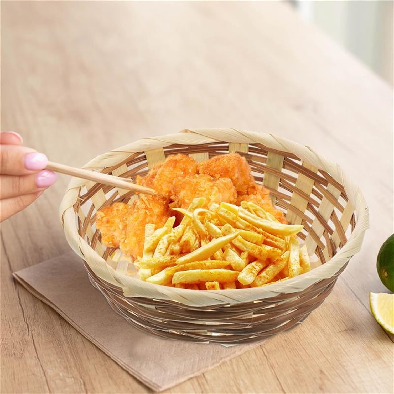 A functional helper to neatly store not only your fruits and veggies, but also bread, snacks, spice bottles or toiletries, toys, tools and more. Use it in the kitchen, pantry or bathroom, compact enough to fit on the countertop, dining table or under cabinet. Bamboo Woven Bread Basket - Fruit Baskets for Serving, Fruit Serving Basket, Wicker Bowl, Bamboo Fruit Basket, Bamboo Fruit Bowl for Dinner and Everyday Use, Set of 3 Product Name: Fruit Basket Note: 1. Please check the size and color before purchasing. 2. Does not include items other than those shown in the product photo. 3. Please note that due to the different monitors, slight chromatic aberration may occur, please understand. 4. The above data is for reference only, the size is manual measurement, each variable may be different, please refer to the actual product, thank you.