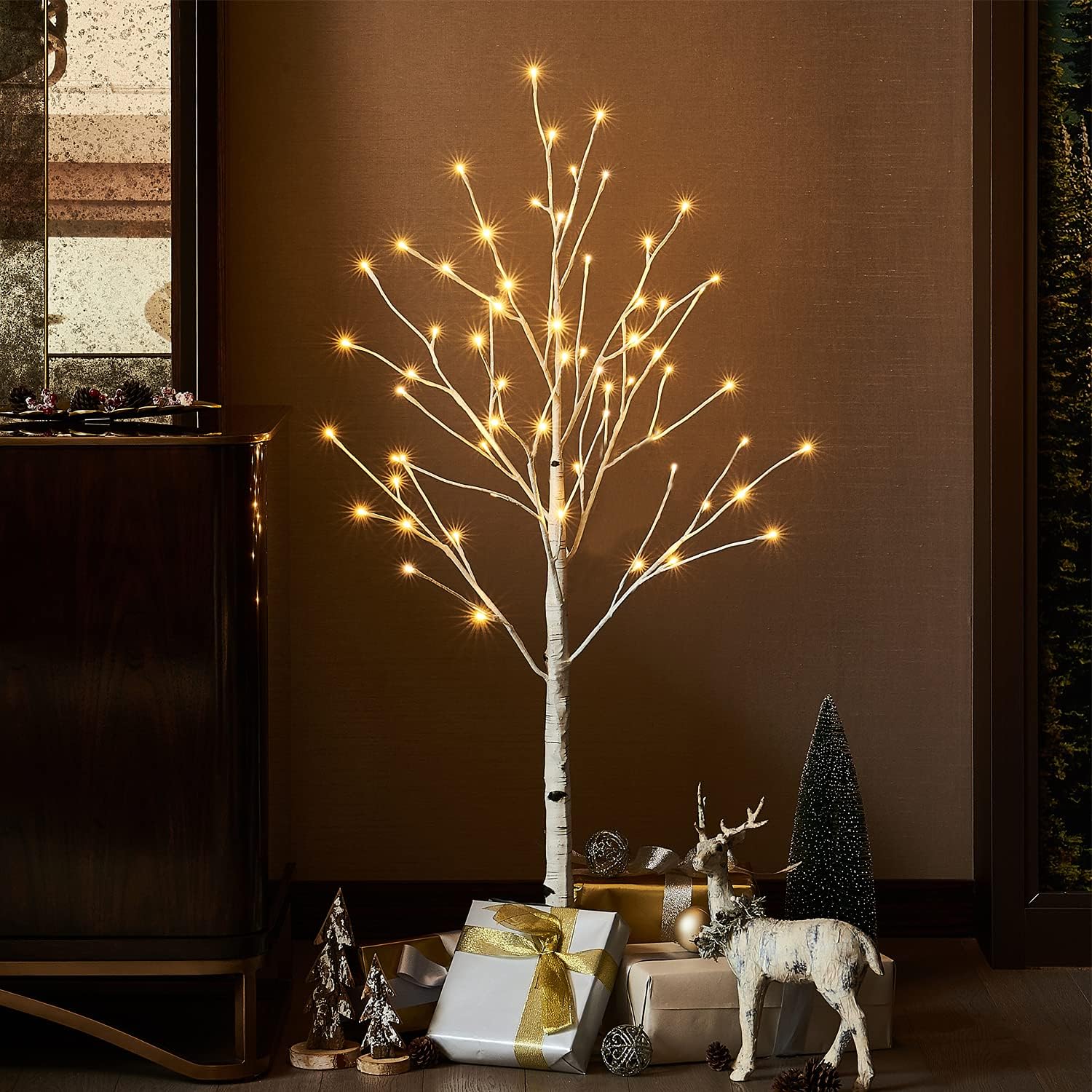 • 🎄【Easy to assemble】Birch tree lights designed with K-D structure,which makes It easy to set up and storage,and each tree comes with a removable mounting base and four ground stakes so you can place it on floor or stake in the ground.Also you can wrap the base with burlap.(burlap NOT included)