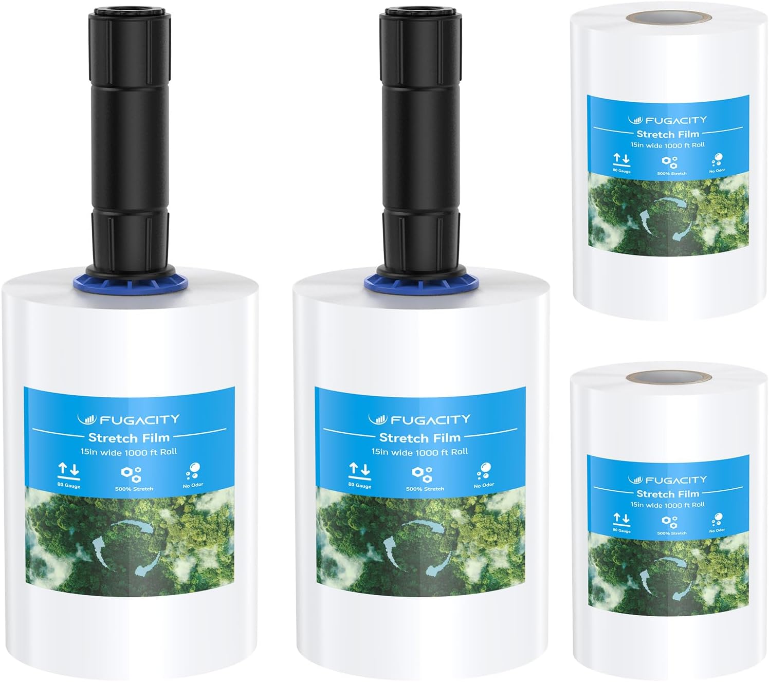 FugaCity Stretch Wrap Film-5 in 1000 FT 80 Gauge Shrink Wrap for Furniture Wrapping Shipping, Moving Supplies Clear Plastic Wrap, Heavy Duty Industrial Strength,650% Stretch(6 Roll with Handles)