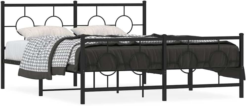 This industrial-style double metal bed frame mixes functionality with modern looks, making a striking centerpiece in any bedroom. Made from strong steel, the chic black finish not only looks good but ensures long-lasting support for up to two people.Robust Construction: The sturdy steel frame of this bed is built to handle regular use and gives solid support for mattresses. Its strong build ensures stability for a good night's sleep.Ample Storage Options: With lots of space under the bed, this frame is perfect for tucking away shoes, boxes, or extra bedding, helping keep your room tidy. The lifted design maximizes floor space.Stylish Design: With its industrial vibe, this bed frame goes well with many interior styles, from urban lofts to modern spaces. It's a great addition that enhances your bedroom's overall look.Versatile Usage: Perfect for bedrooms, guest rooms, or multi-functional spaces, this bed frame fits various needs. It offers a great blend of style and practicality.Easy Maintenance: The powder-coated finish not only boosts its durability but also makes cleaning simple—just a damp cloth does the trick!Color: Black Shape: RectangularMaterial: Metal SteelFinish: Powder-Coated Indoor/Outdoor: Indoor OnlyCover Included: NoRoom: BedroomCapacity: Full BedMaximum Number of People: 2Dimensions: 61.4 x 81.5 x 35.8 in (W x L x H)Leg Height: 10.2 inWeight: 49.05 lbsSwings: NoDelivery Contains: Metal bed frameAssembly Required: YesRecommended Number of People for Assembly: 2