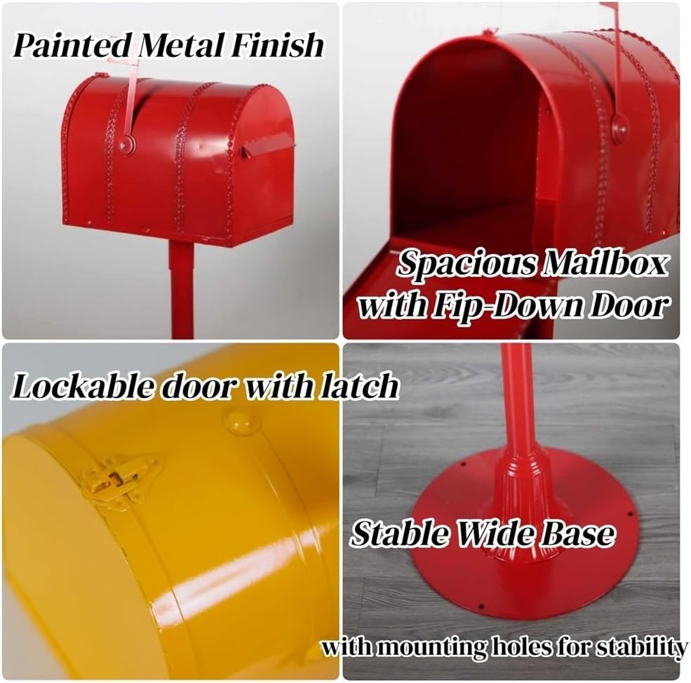 Available in two height options, this mailbox offers flexibility for different spaces and preferences. Whether used outdoors as a functional post box or indoors as a decorative accent, it combines practicality with timeless style.Product Specifications:Product Name: Standing MailboxMaterials: MetalStyle: Vintage, SimpleUsage: Indoor/OutdoorPackage List: Meilbox ×1NOTES:1. Due to the different monitor and light effect, the actual color of the item may be slightly different from the pictures. 2. The size is measured manually, and the error of 0.4-1.2 inches is normal. Please refer to the actual product.3. Please confirm the color and size before purchasing.