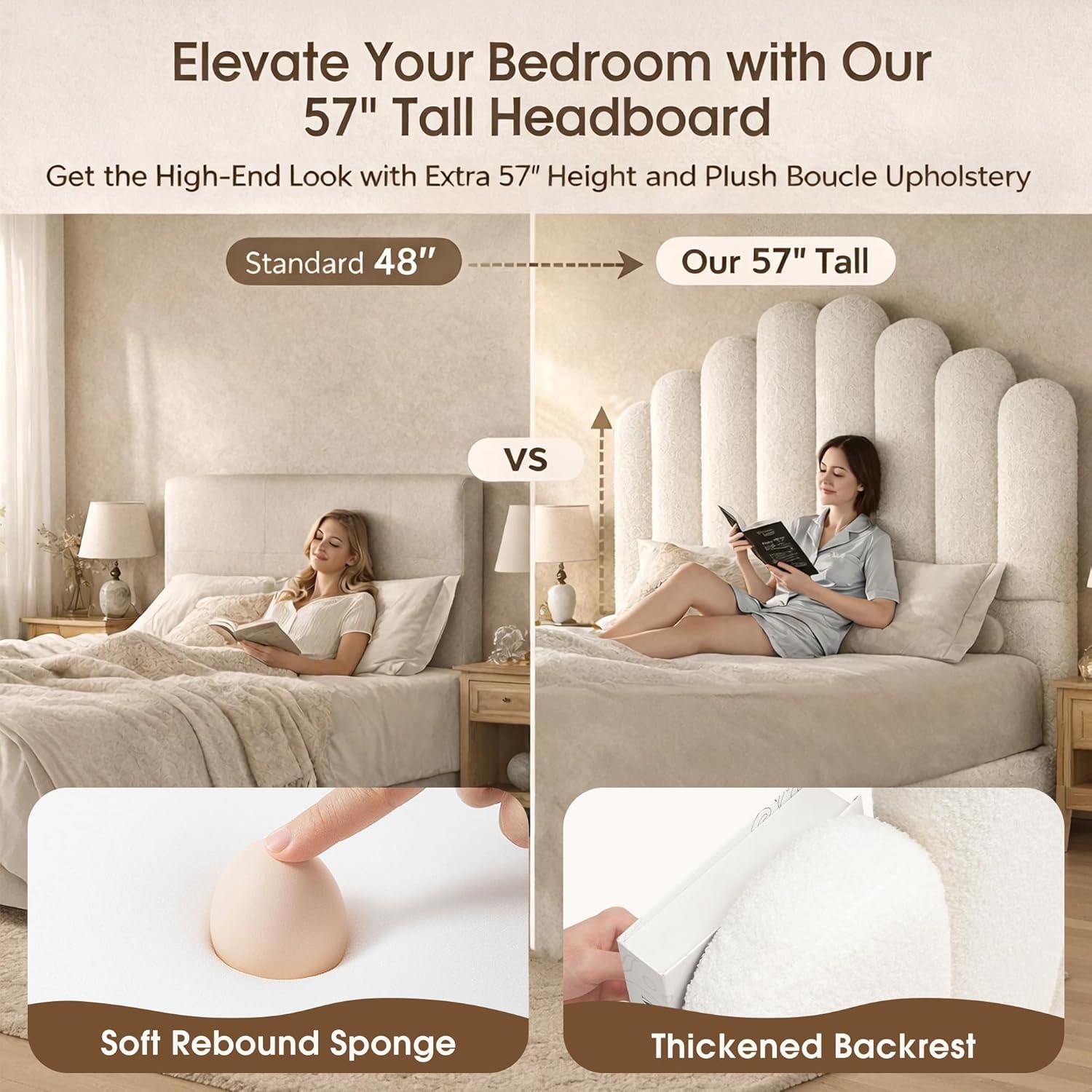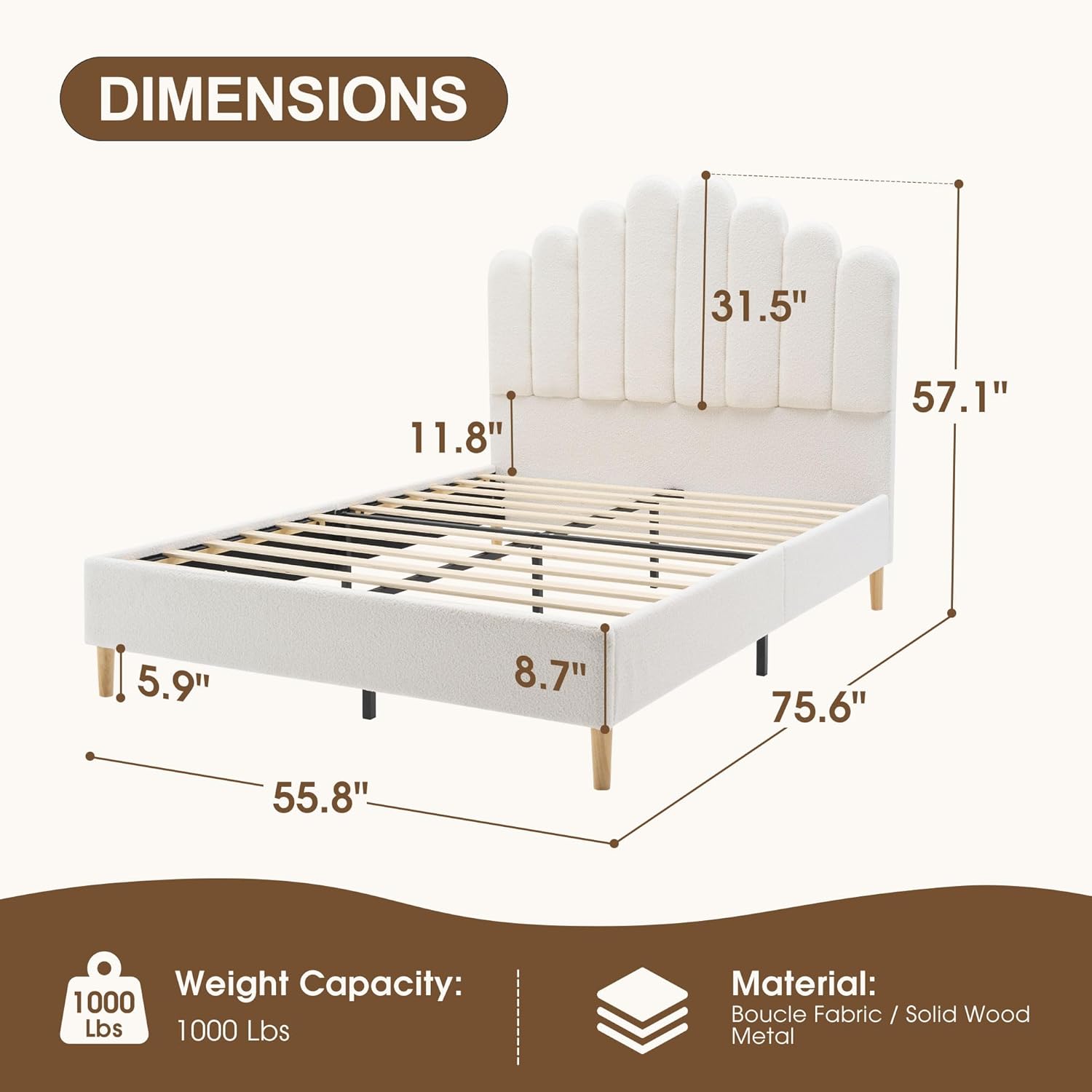 | Headboard Material | Boucle Fabric, Wood |