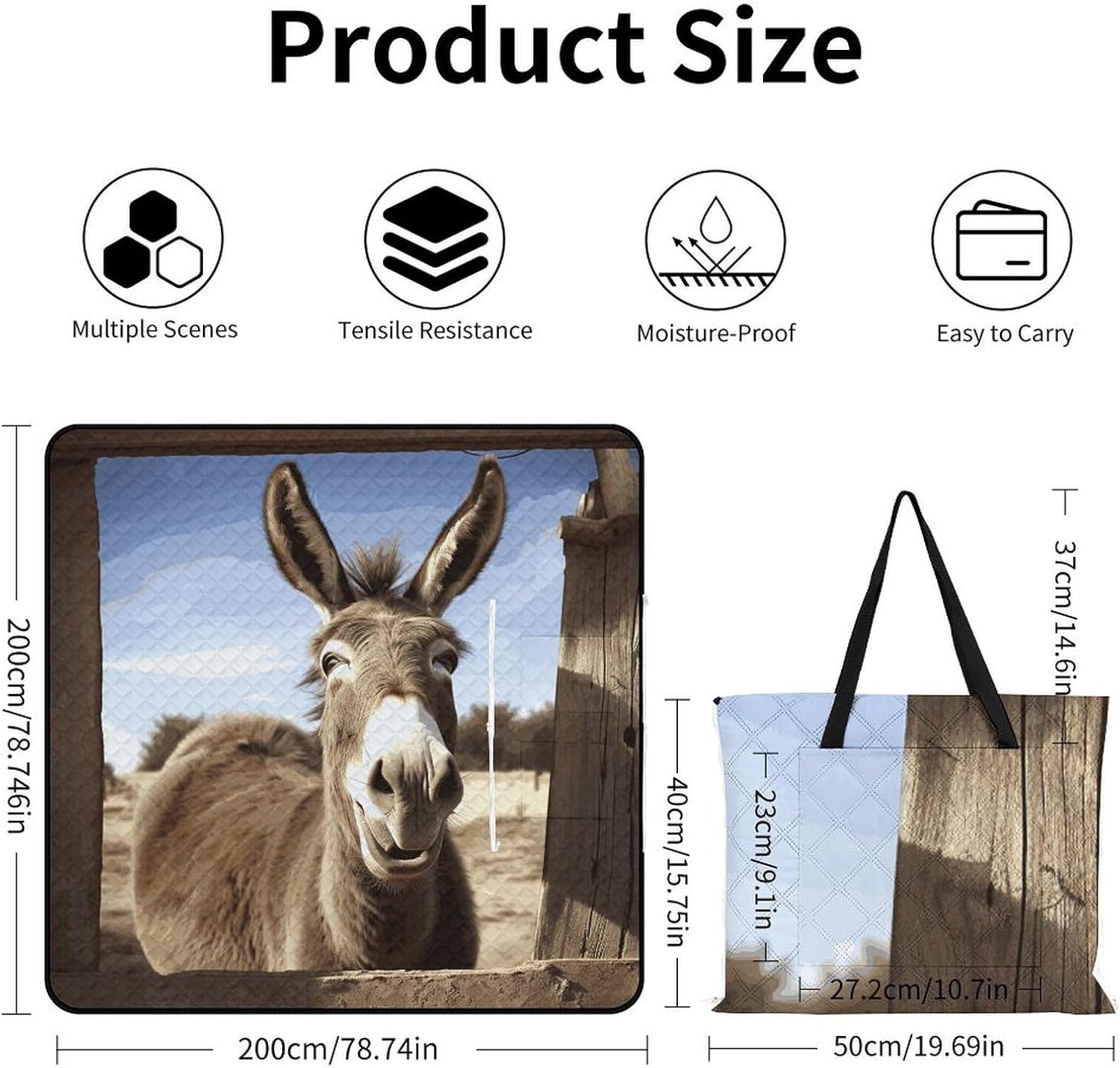 Elevate Your Outdoor Experience with the Versatile Picnic BlanketCollapsible Picnic Mat Picnic Essentials Convertible Tote Bag Portable Rug for Picnics Beach Essentials Camping Pad Cute Picnic Blanket Bag Foldable Travel Mat Large Family Picnic Blanket Outdoor Picnic MatsSuperior Protection and ComfortForget worrying about wet grass or prickly sand. Our blanket features a smart 3-layer construction. The top layer is soft to the touch, while the middle padding provides just the right amount of cushioning against hard ground. The bottom layer, made from durable 210D Oxford cloth, is completely waterproof and acts as a barrier against moisture and dirt, ensuring you stay clean and dry.Designed for the Modern ExplorerWe understand that space is precious when you're on the move. That's why our blanket features an ingenious foldable design. In seconds, it transforms from a full-size mat into a compact carry bag with a handle. This makes it incredibly easy to transport and store. But the innovation doesn't stop there; the carry bag itself is designed to be used as a sturdy shopping tote, making this blanket a true 2-in-1 essential for eco-conscious shoppers.Choose Your Perfect Size:59 x 40 inches / 150 x 100cm: Ideal for couples or solo use.59 x 59 inches / 150 x 150cm: Perfect for a small family or small group of friends.78.8 x 78.8 inches / 200 x 200cm: Our large size, perfect for family gatherings and group outings.Whether you're planning a beach vacation, a camping trip, a hike, or a simple day at the park, this cute picnic blanket is your reliable partner for comfort and convenience. Pack it, carry it, and enjoy the outdoors without compromise.