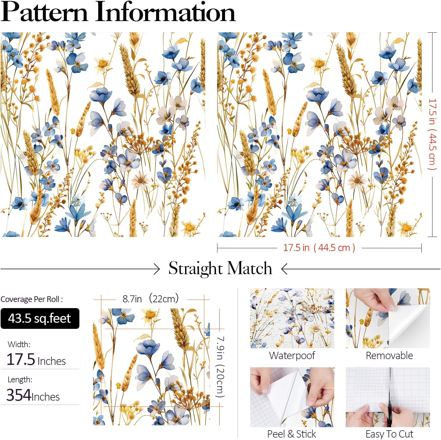 | Style | Vintage Country Fall Wheat Wildflower Peel and Stick Wallpaper |