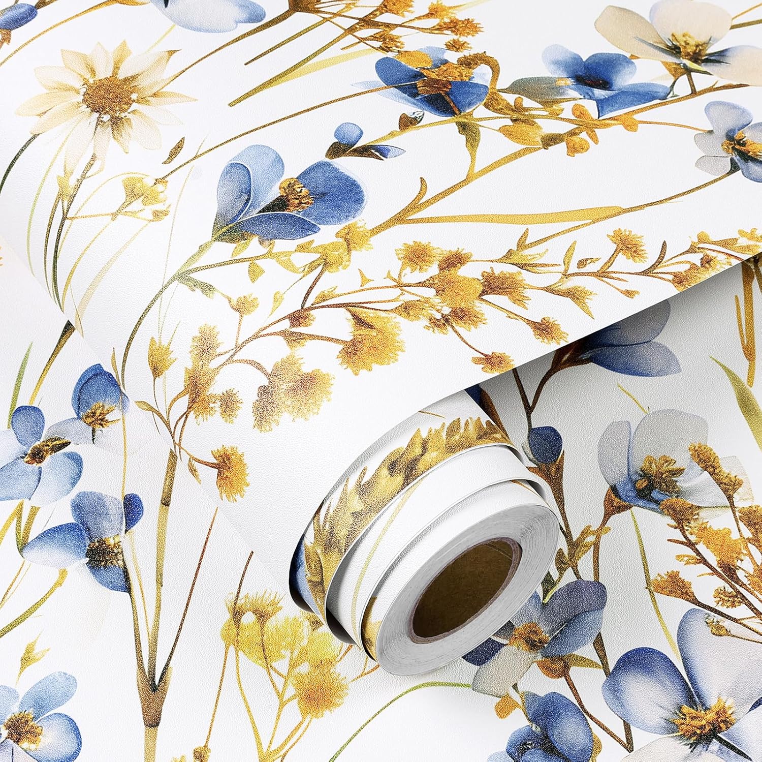 | Theme | Botanical Country White Blue and Gold Floral Wallpaper Peel and Stick Flower Contact Paper for Wall Covering Kitchen Cabinet Contact Paper Drawer Liner Waterproof |