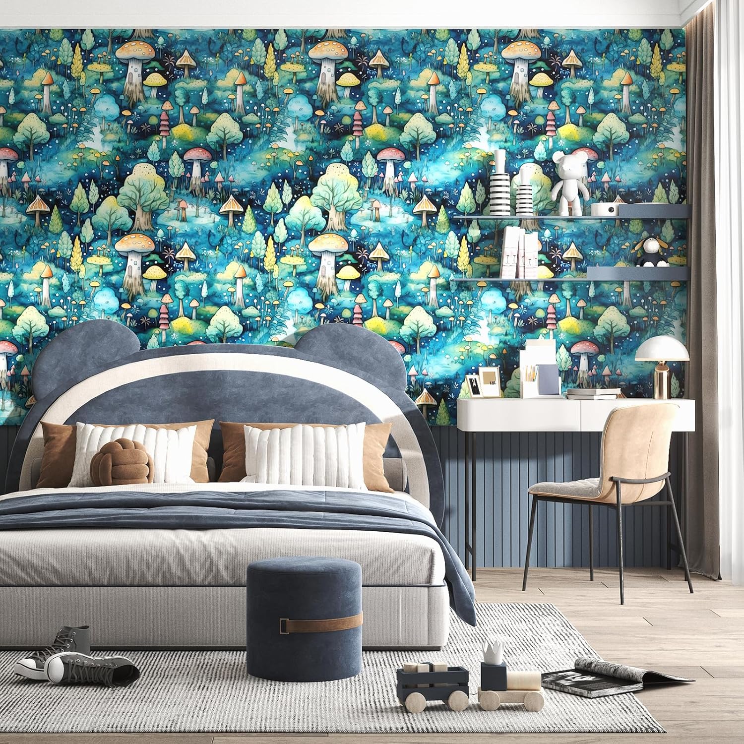 | Theme | Botanical Green Blue Mushroom Wallpaper Peel and Stick Mushrooms Contact Paper Peel and Stick for Cabinets |