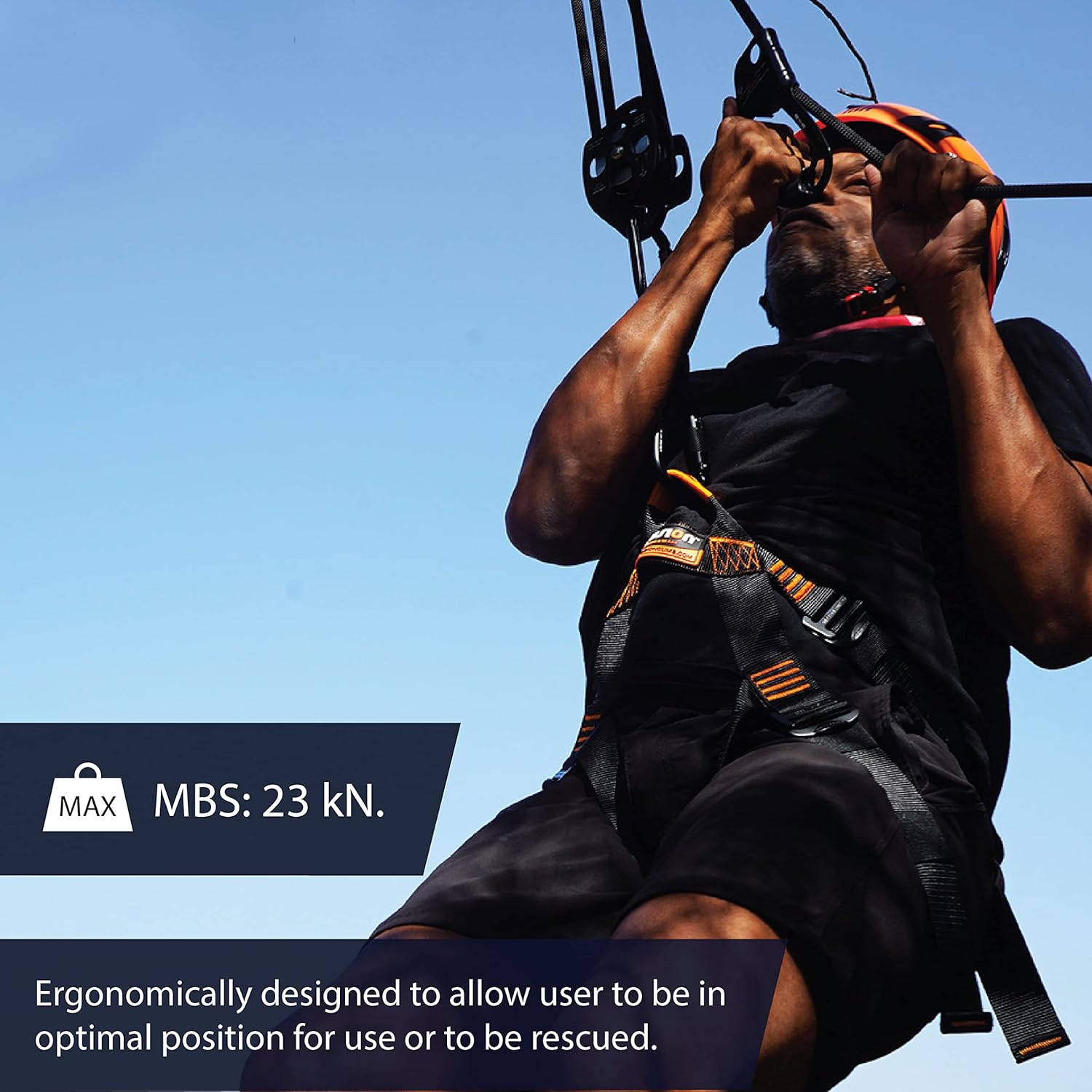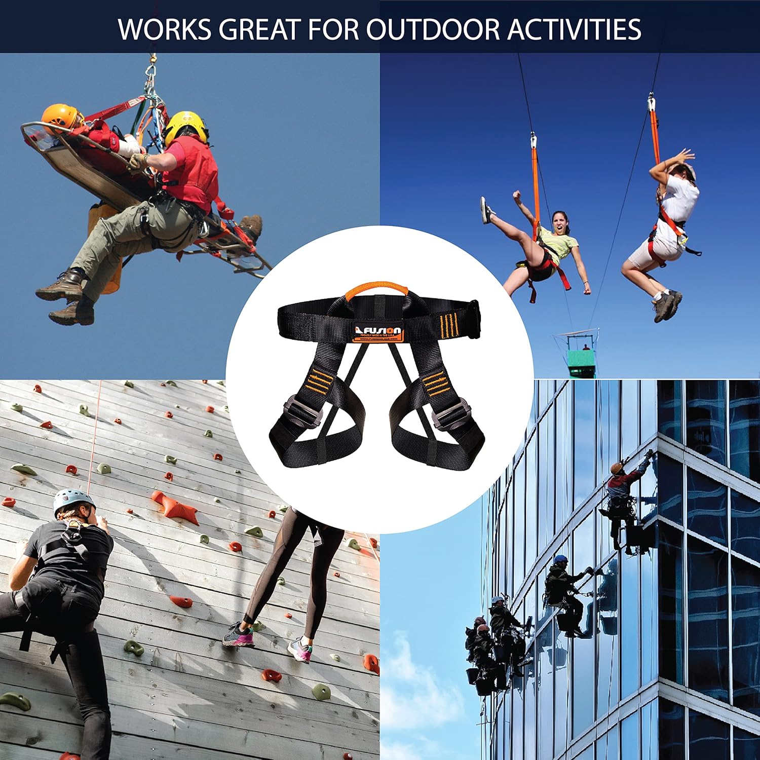 Product Description Fusion Climb Centaur Half Body Harness Black M-XL for Climbing Gym & Rope Course - In Greek mythology Centaurs were the embodiment of untamed nature and the teachers. - The Centaur is the ideal multi-purpose and rental harness since it is light, easy to adjust and super strong. - Light weight harness with reinforced belay loop. - 3 point adjustment. 2 piece adjuster buckles used in waist and legs. - Adjustment on the outer body allows for trainer to do adjustment of the wearer. - Ideal harness for indoor climbing gyms, ropes courses, and outdoor guides due to its 3 fast pass buckles for easy adjustment by instructor, reinforced tie-in point for extra durability. - Made from 5000lb test mil spec webbing and weighs under 3 lbs. - MBS: 23 KN - Size: M-XL From the Manufacturer The Centaur is the ideal mulit-purpose and rental harness since it is light, easy to adjust and super strong. Made from 5,000lb test mil-spec webbing with a reinforced tie-in point and stitching, this harness will last even under high use conditions like a climbing gym or rope course.