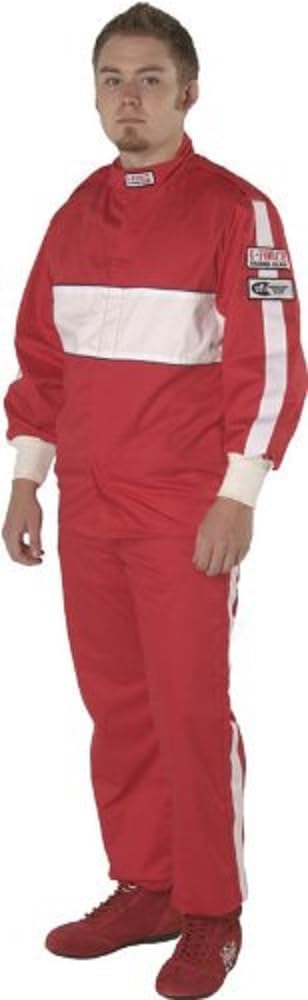 This is G-Force's most popular suit available in an SFI-5 rating. We ask any driver to compare the 505 suit to our competitors. We go above and beyond what you have come to expect from an entry-level multi-layer suit. This suit comes with standard epaulets, belt with loops, matching nomex cuffs, arm and leg stripes, and a large chest billboard with contrasting piping. The Pyrovatex outer layer of this suit is available in attractive red, black, or blue. All with white stripes across the chest and down the arms and legs. All seams are safety stitched to help limit seam failure. The interior of the 505 suit is lined with the world renowned CoolQuilt liner. Dry = cool and this liner keeps you dry. The built in Abzorb-A-Line draws the moisture from the body and keeps the driver's body temperature down. Never before, has your average weekend racer been able to so easily afford a suit with a TPP near 30. The days of a racer pinching pennies on his driver suits are over. This suit is available in a 1 or 2 piece (jacket and pants). Available in black, blue or red.