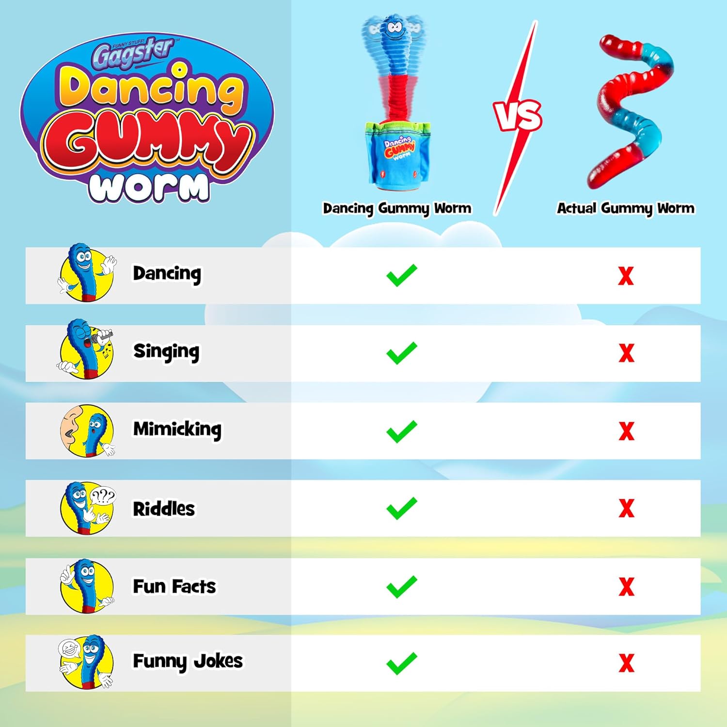 The Gagster Dancing Gummy Worm is a hilarious and entertaining plush toy that will bring laughter to any occasion. With its comical dance moves and quirky personality, it's perfect for parties, office pranks, or gag gift exchanges. Whether you're looking to surprise a friend, family member, or coworker, this dancing gummy worm is sure to steal the show. Its fun and playful antics create an unforgettable atmosphere, making it the ideal gift for birthdays, holidays, or just because. Get ready for endless giggles!