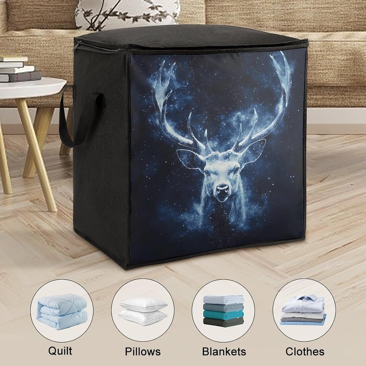 Make seasonal storage easy and efficient. This comforter storage bag is made of polyester material, which is strong and wear-resistant. It can protect your clothes and bedding from moisture and dust for a long time. The 70L large capacity can easily store heavy winter quilts, down jackets, blankets and other large items. The handle design makes moving more effortless