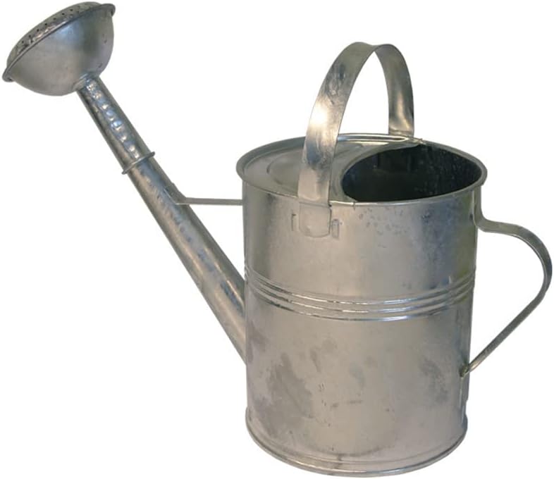 Metal watering can 5 litres, hot-dip galvanised, including watering head, capacity: approx. 5 litres. Height: approx. 23 cm, (measured without handle), diameter of body 18 cm (measured without handle and nozzle), hot-dip galvanised.