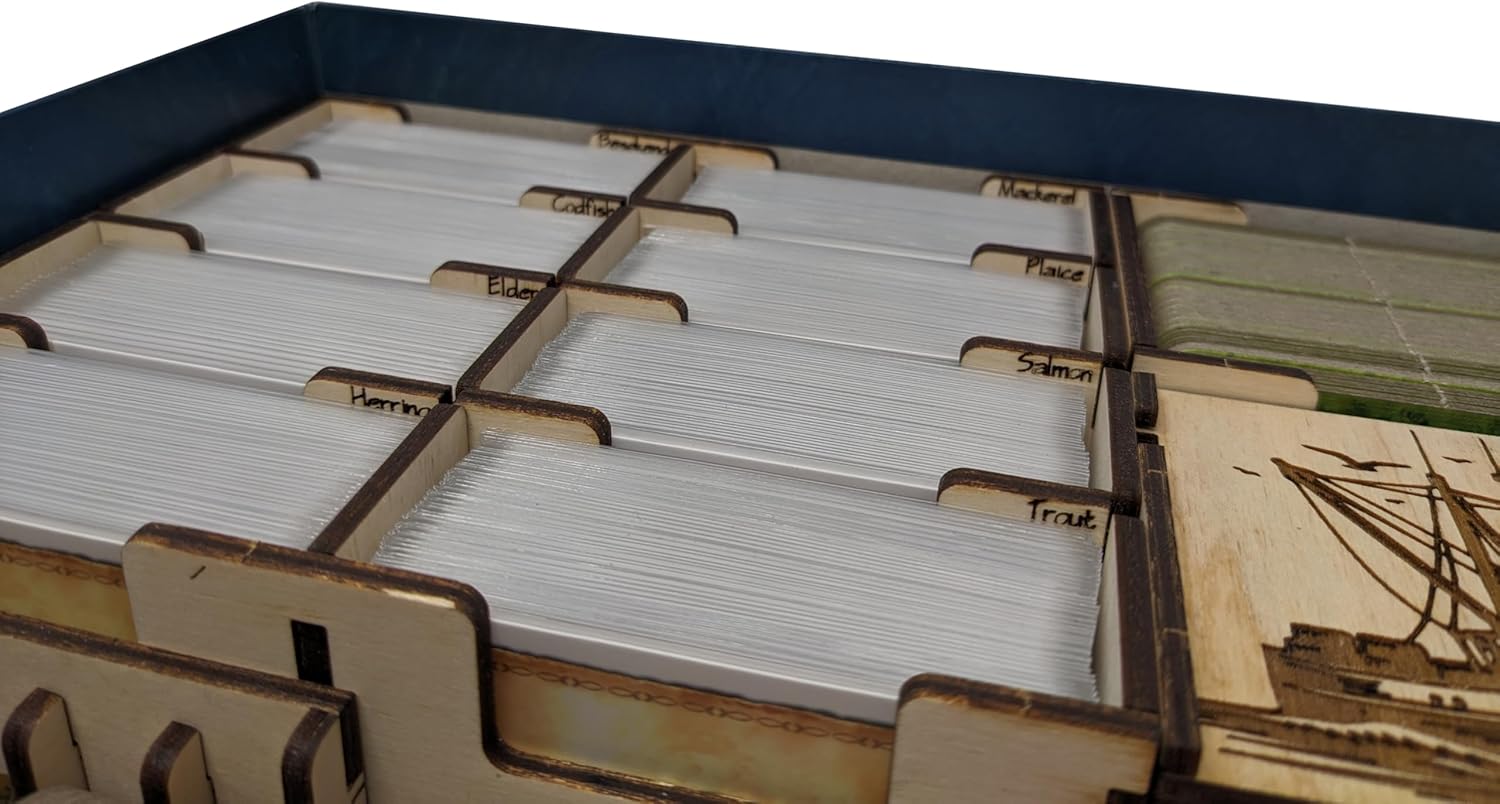 Introducing our laser cut wooden organizer for the board game Nusfjord! While this organizer was designed for the Big Box Edition, it is also compatible with some versions of the non big box editions. Please check the size of your non big box edition to check compatibility. Box size should be: 12.4" x 8.9" x 2.9" / 315 x 226 x 73mm.