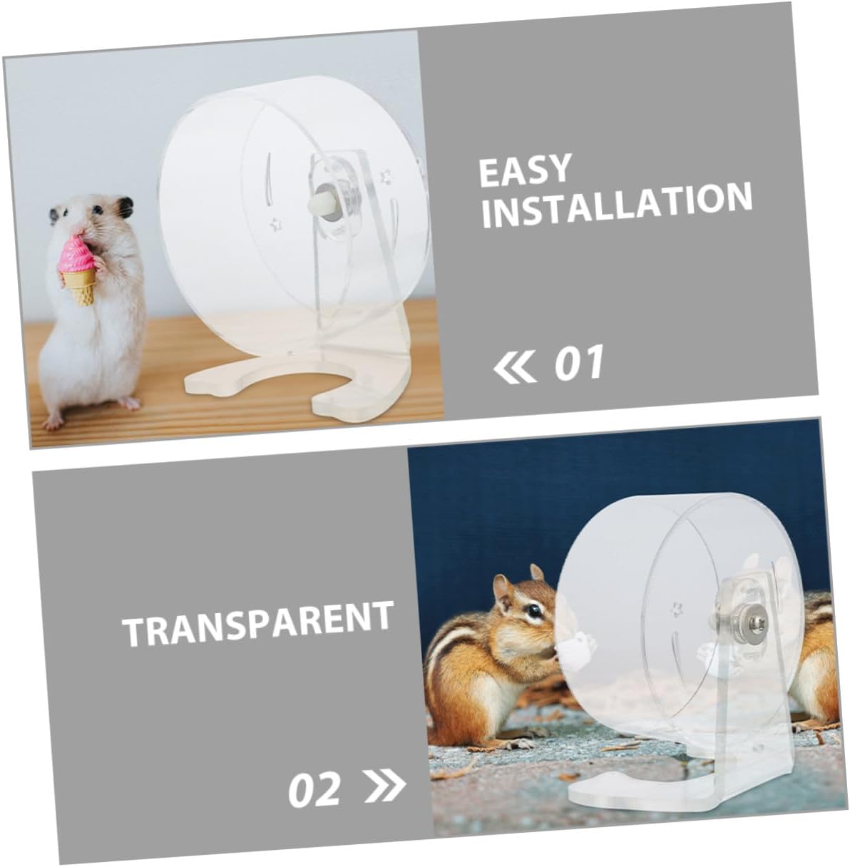 Package List 1 x hamster running wheel Features -Encourages active : the spacious interior allows for movement, helping your pet stay active, fit, and healthy while reducing the risk of obesity small silent hamster wheel -Quick and easy setup: compatible with a variety of pet enclosures, this wheel is easy to install, providing a convenient exercise solution for your small pet Silent Exercise -Durable quality: built with durable, durable materials, this wheel withstands daily use while retaining its high transparency and smooth finish -Product Info: Pet hamster running wheel -Color:Transparent -Size:28.00X22.00X12.70cm/11.00X8.65X4.99in -Material:Acrylic -Performance: advanced silent technology ensures the wheel operates quietly, making it ideal for use in shared living spaces or during the night Transparent Hamster Wheel -Clear view: the transparent design lets you observe your pet's activities from all angles, adding fun and engagement to your experience small animal silent wheelGoods DescriptionSilent Exercise Wheel Its quiet mechanism minimizes disturbances, making it suitable for use in any room.wheel silent hamster Featuring a sleek and modern design, this hamster wheel doubles as both a functional exercise tool and an attractive addition to your pet's habitat.silent running hamster wheel The ergonomic structure supports natural movement, encouraging active play and physical well-being