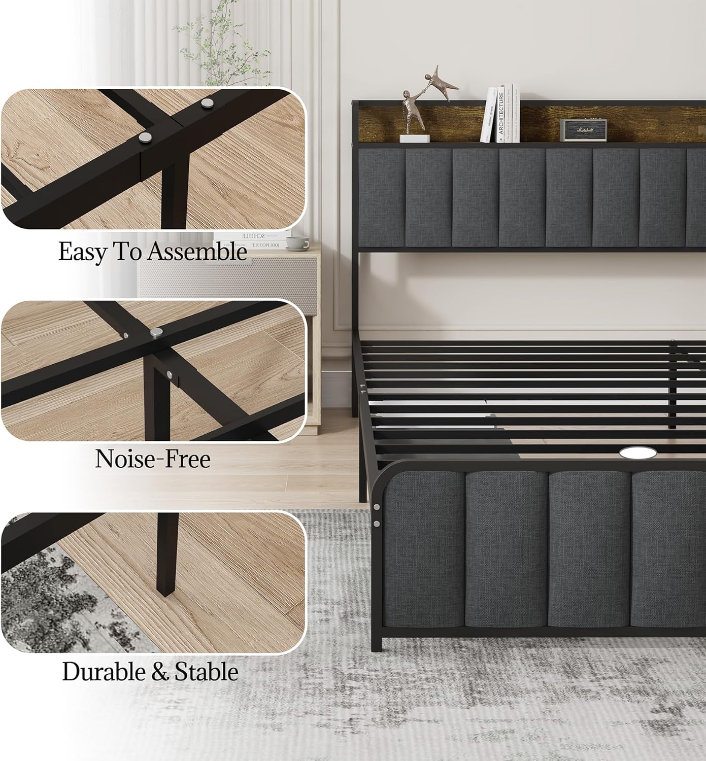 Welcome to GAOMON, where your shopping experience is our priority. We're dedicated to offering a diverse range of reliable, high-quality products, ensuring you find items that resonate with your preferences.If you have any inquiries or require assistance, don't hesitate to reach out. Our responsive team is committed to providing prompt replies within 24 hours.==========================================================Introducing Our Twin Bed Frames - Functional, Stylish, and Easy to AssembleDiscover the perfect blend of style and functionality with our Twin Bed Frames. Crafted with utmost precision, these bed frames are designed to elevate your sleeping space. Here's why you should consider our Queen Bed Frame:๐๏ธ Specifications:โ Product Name: Bed Frameโ Available Colors: Black / Greyโ Sizes: Full / Queen / Kingโ Weight Limit: 800 LBSโ Overall Dimensions: 86.61" (L) x 61.81" (W) x 40.55" (H)โ Gross Weight: 74.95 LBS๐๏ธ Package Includes:โ Assembly Hardwareโ Assembly Toolsโ Assembly Manual๐๏ธ Important Notes:โ Please allow slight measurement deviation due to manual measurement.โ The actual color of the item may slightly vary from the images due to differences in monitors and lighting effects.Elevate your sleep experience with GAOMON's Twin Bed Frames, where quality, style, and ease of assembly converge. Discover the perfect harmony of form and function for your bedroom oasis.